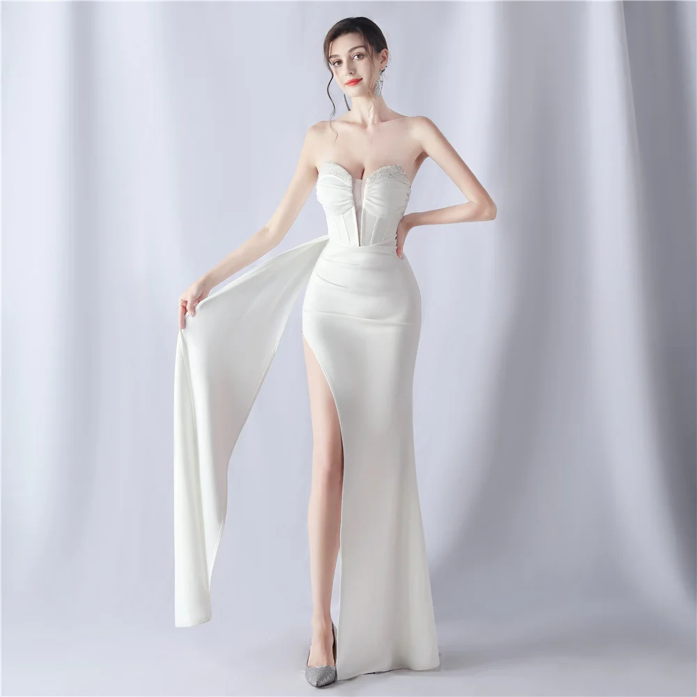 ZYHT 73957 Hot Selling Women Lady Printed Satin Beige Mermaid Fish Tail Floor Length Party Cocktail Evening Dress Gown
