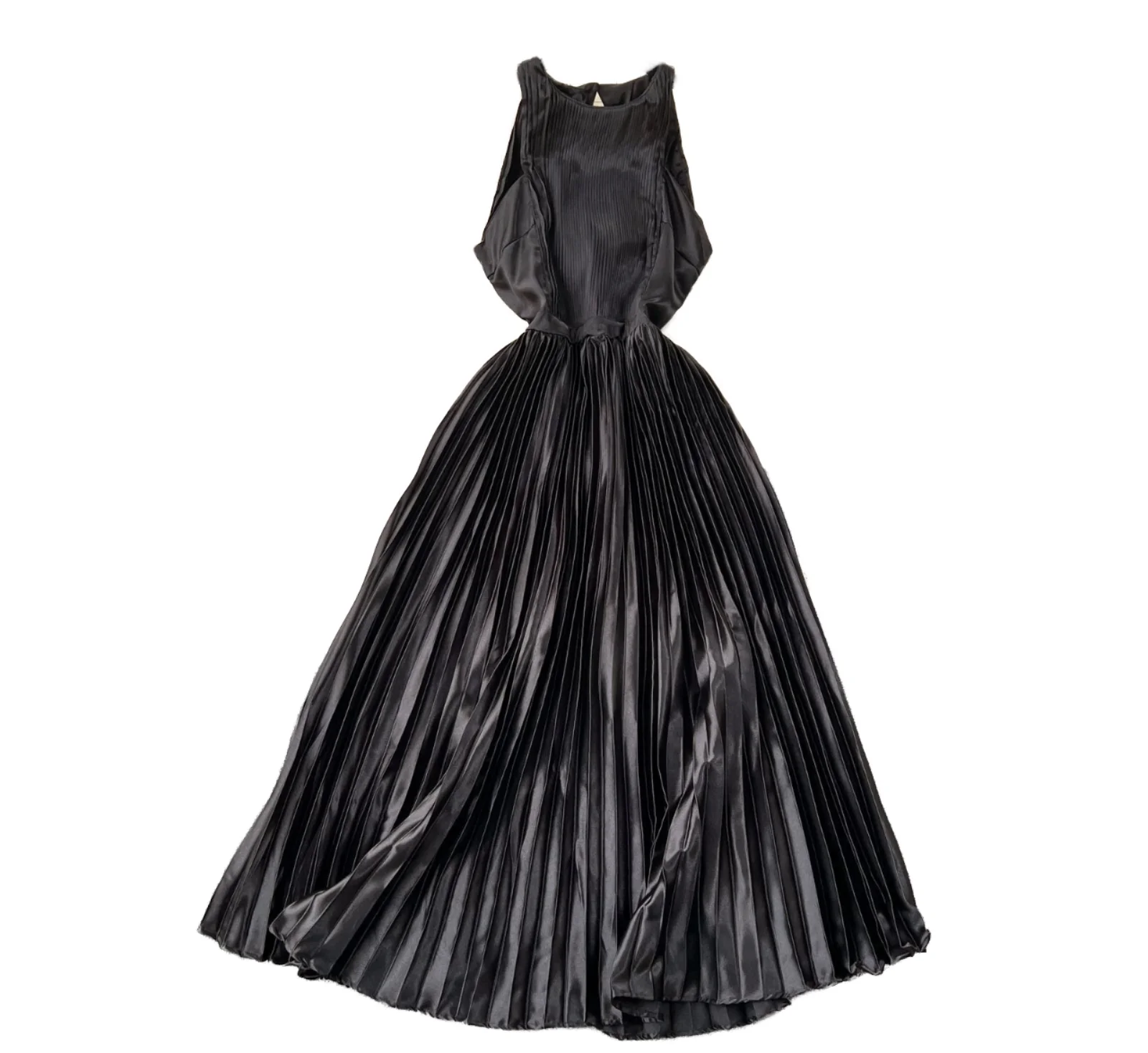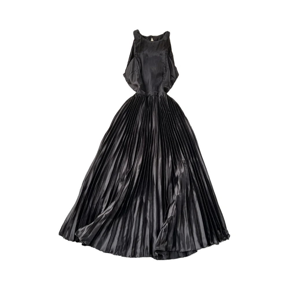 Women's Summer Sexy Halter Slit Dress Empire Waist Solid Pattern Backless Hollow Out Ruched Decoration for Parties