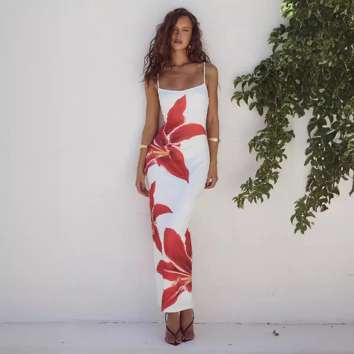 Sexy Spaghetti Strap Girl's Summer Dress Elegant Women's Floral Casual Maxi Dress