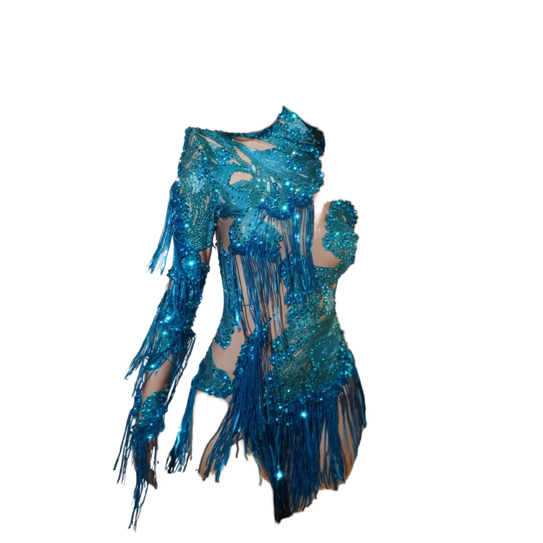 Women's Sexy One Piece Bodysuit with Fringes and Rhinestones Skinny Fit for Stage Performance Club Live House or Pole Dance