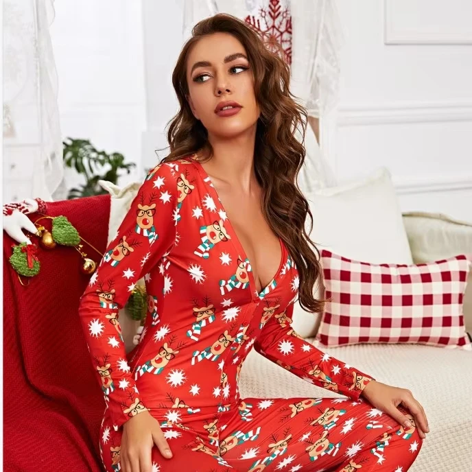 Factory Direct Christmas Sexy Stretch Knitted Print Plus Size Women's Christmas Jumpsuit