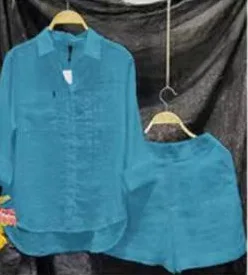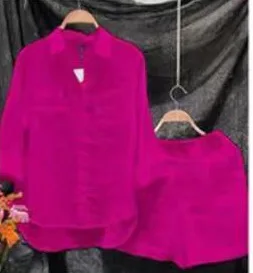 Spring Summer Shirt + Shorts Suits Elegant Casual Solid Color Fashion Long Sleeve Button Suits Women's Two-piece Set