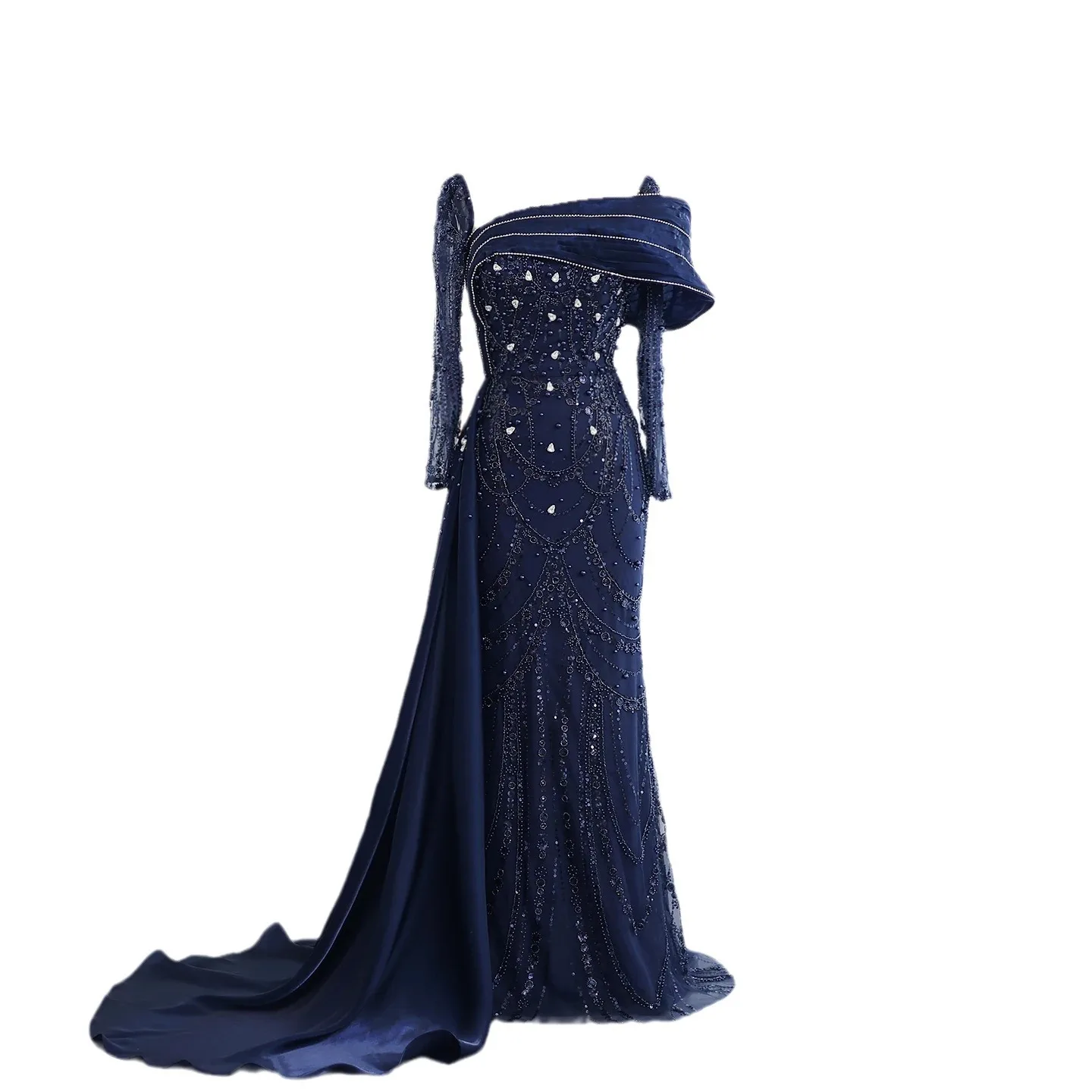 ZYHT 73902 Dark Green Blue Long Sleeve Simple Elegant Evening Dress Customize High End Women Clothing Manufacturer