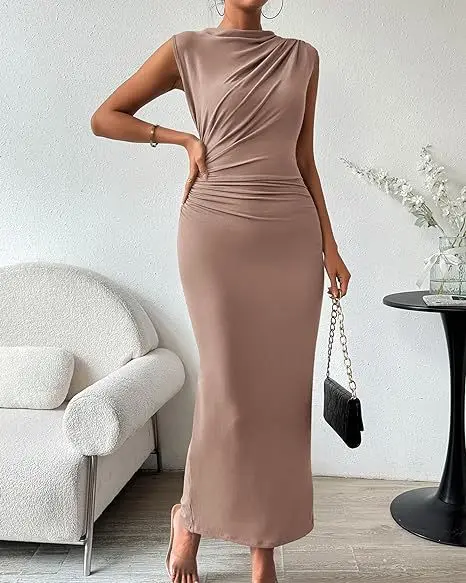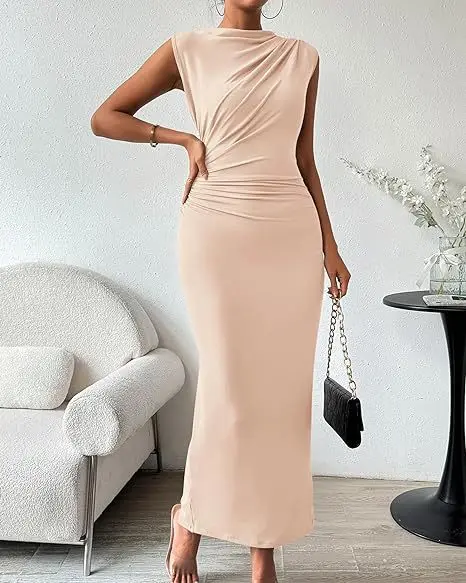 2026 New Arrival Women Casual Sleeveless Dress Solid Color Backless Tight Fitting Dresses Women