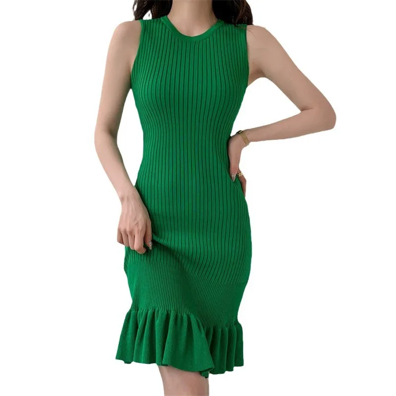 Wholesale 2026 Spring New Fashion Ladies Office Wear Button Waist Lantern Sleeveless Dress Women