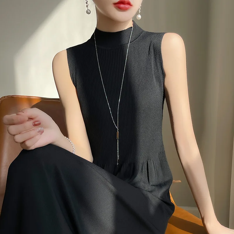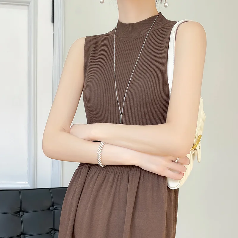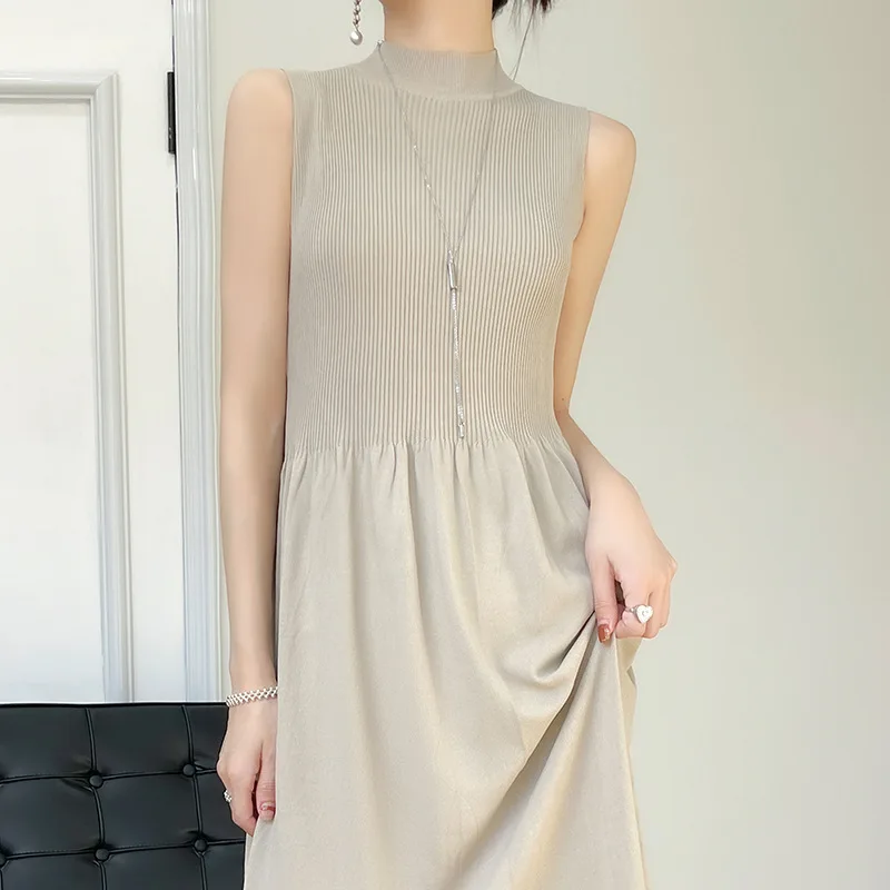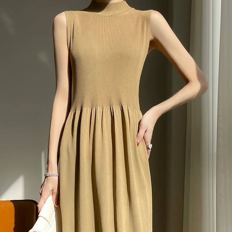 New Style Sleeveless Knitted Vest Dress for Women Autumn and Winter Stand-up Collar High Waist Bottoming Sweater Dress