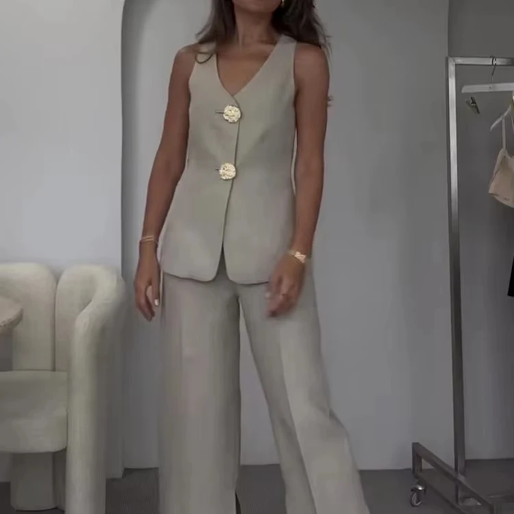 Two Pieces Summer Casual Elegant Woman Sets Custom Oem 2 Pieces Top and Women blazer Pants Set