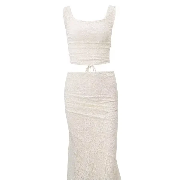 2026 Spring New Arrivals Sexy Women Pleated Top French Style Elegant Lace Dress Two Piece Set