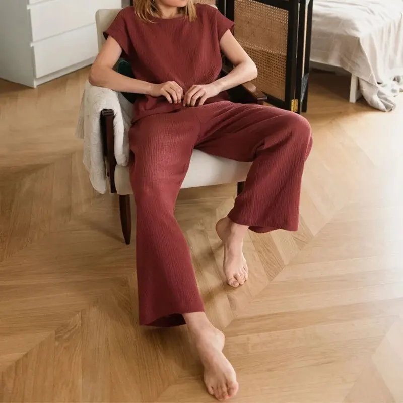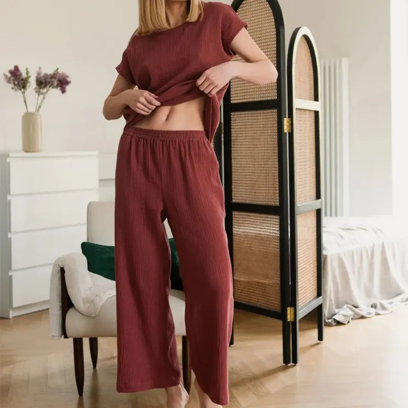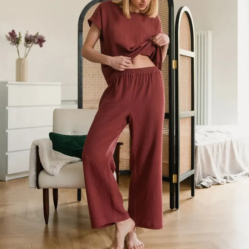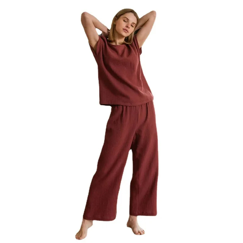 Home Wear Brown Shorts Suits Woman Summer Casual O Neck T Shirt With Elastic Waist Shorts Two Piece Sets Women Sleepwear
