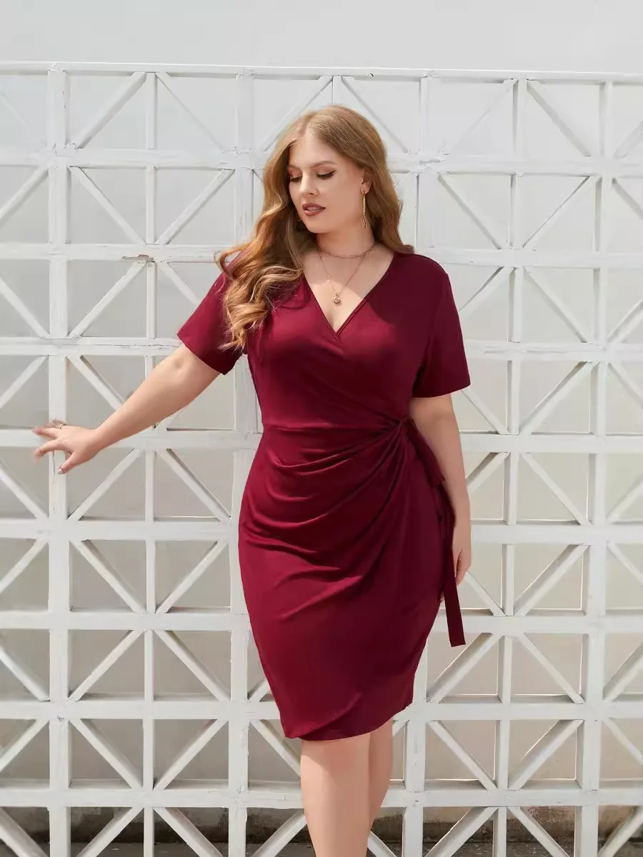 New Plus Size Fashion Elegant Office Work Holiday V Neck Custom Female Women Lady Vestidos Evening Party Mid Length Dress