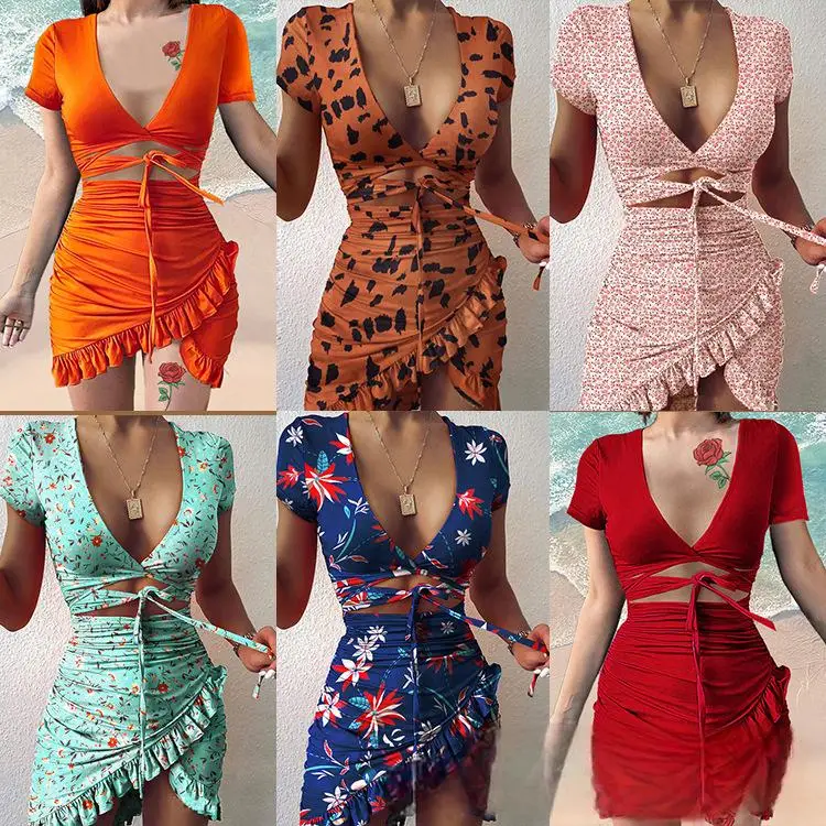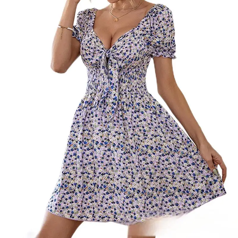 Miscellaneous Printed V-neck Dresses for Women's Clothing Inventory, Popular Mixed Batch Supply