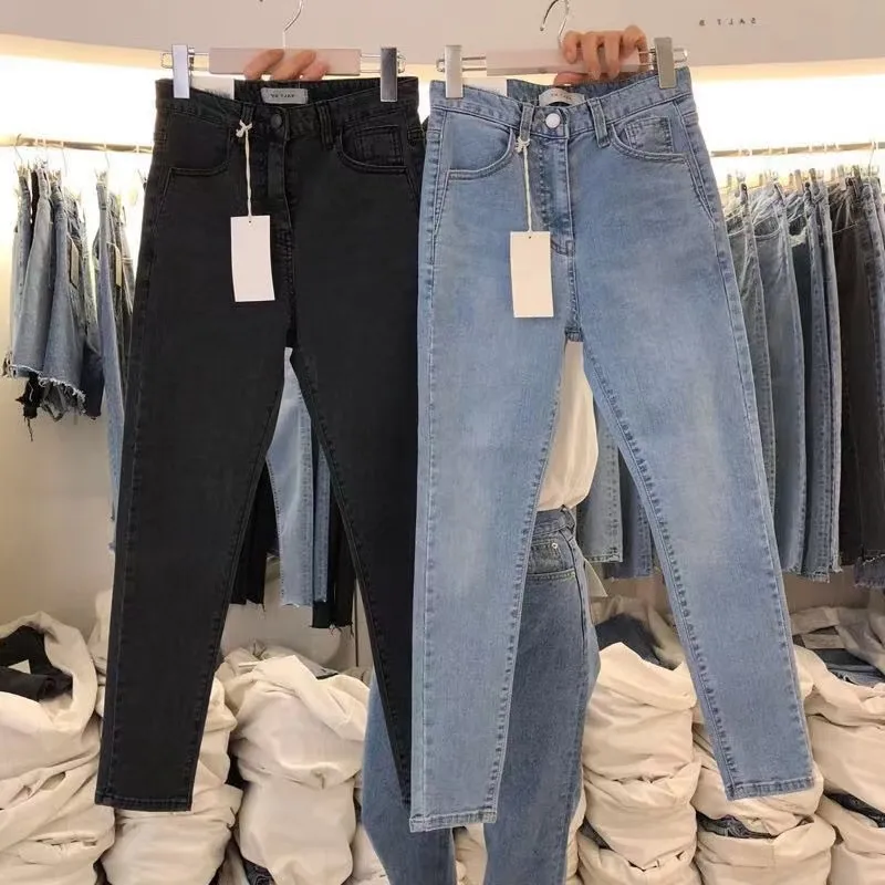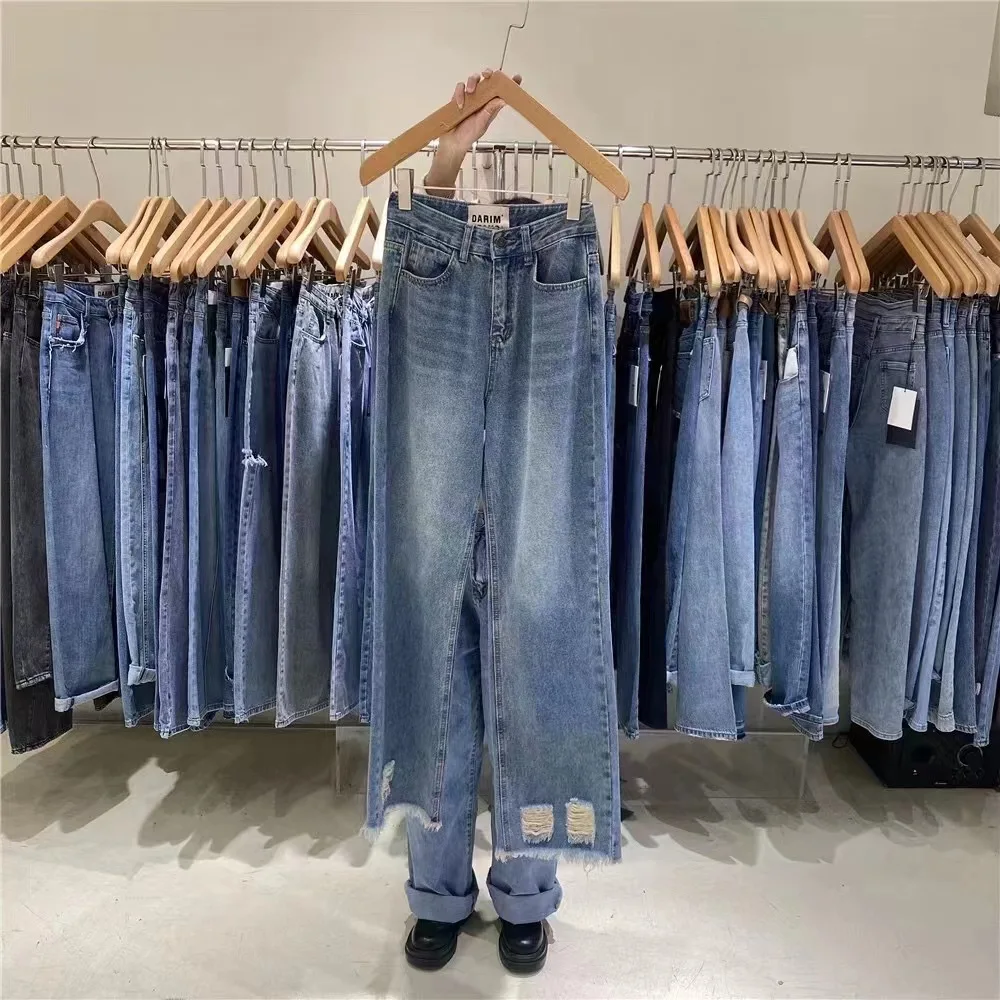 New Fashion High Quality Stock Wholesale Straight Business Casual Stretch Plus Size Male/Female Jeans