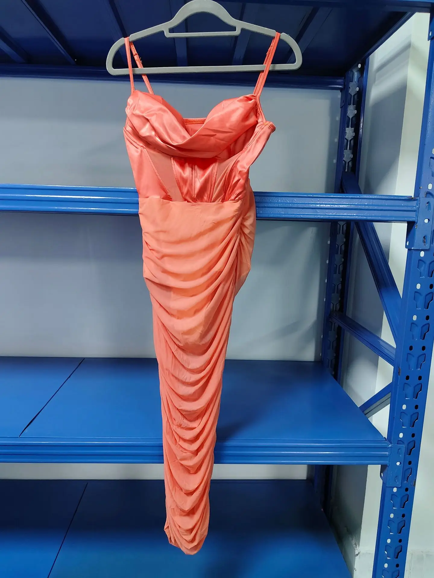 ZYHT 73957 Hot Selling Women Lady Printed Satin Beige Mermaid Fish Tail Floor Length Party Cocktail Evening Dress Gown