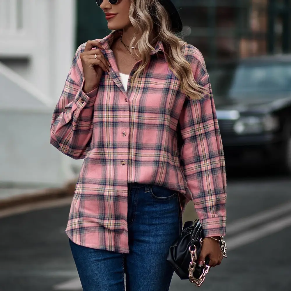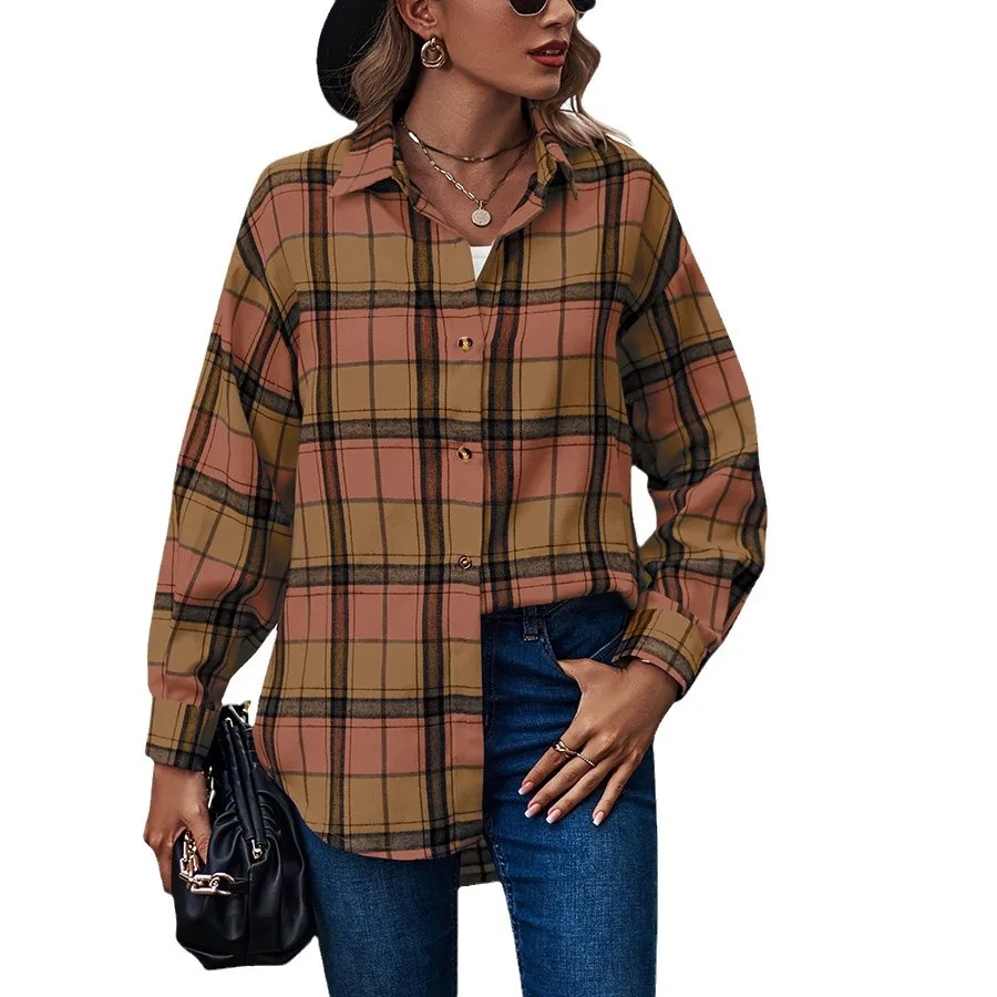 Women's Vintage Satin Blouse with Embroidered Logo Fashionable V-Neck and Long Sleeves Button-Up Shirt Top for Autumn Summer