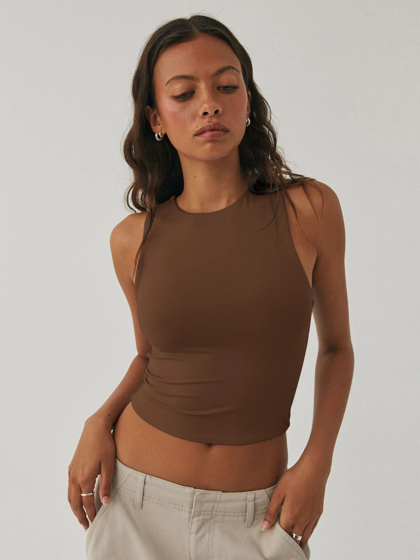 European and American Women's New Y2K Sexy Navel Exposed Sleeveless Tight Bottomed Shirt With Round Neck Racerback Vest