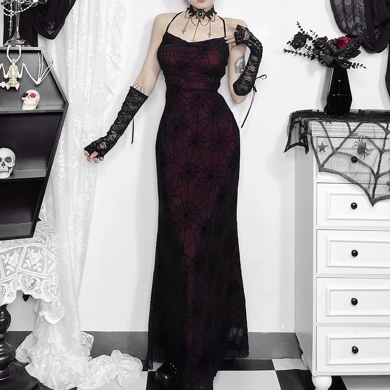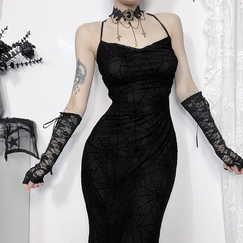 Summer 2026 New Dark Collar Japanese Style Spider Backless Gothic Dress Women