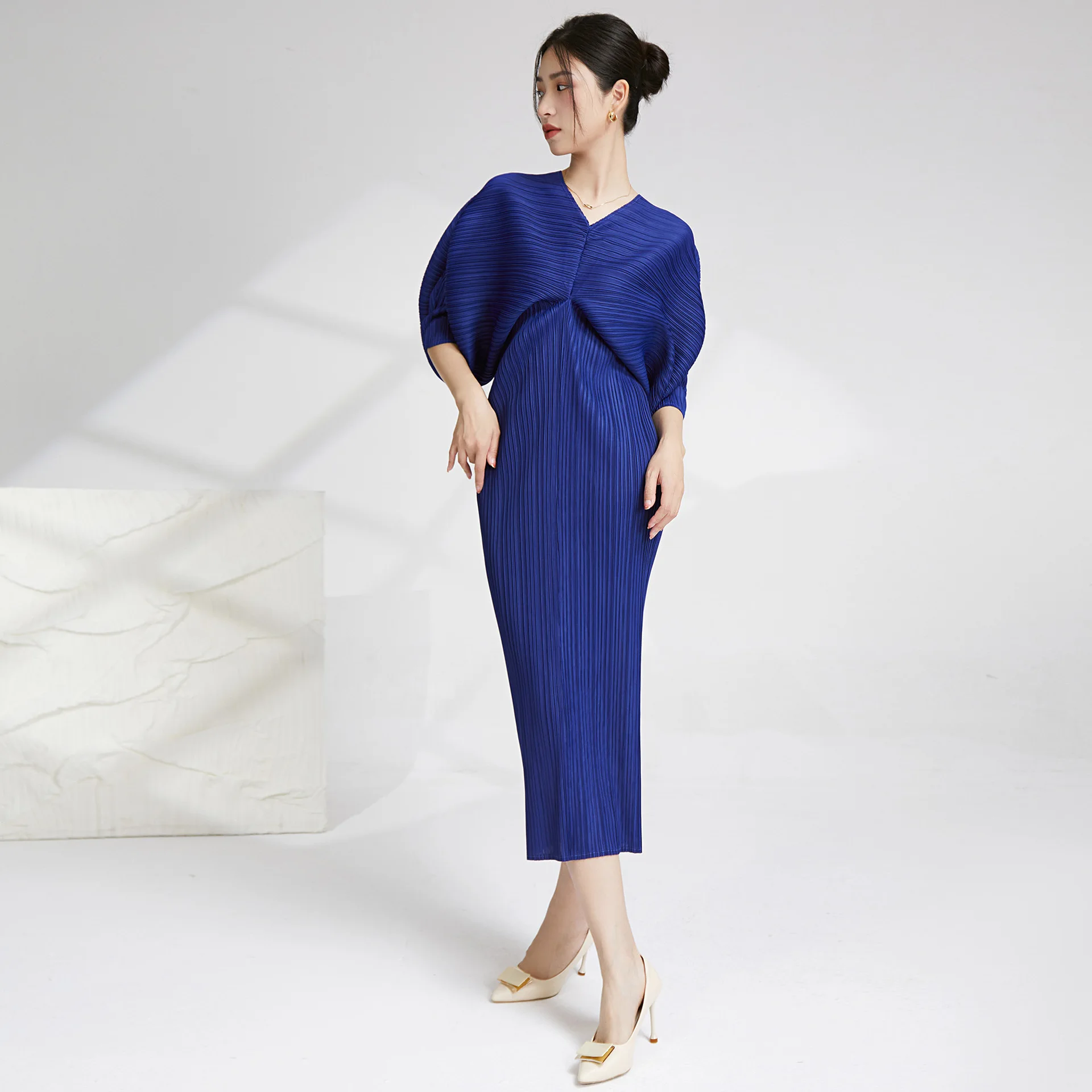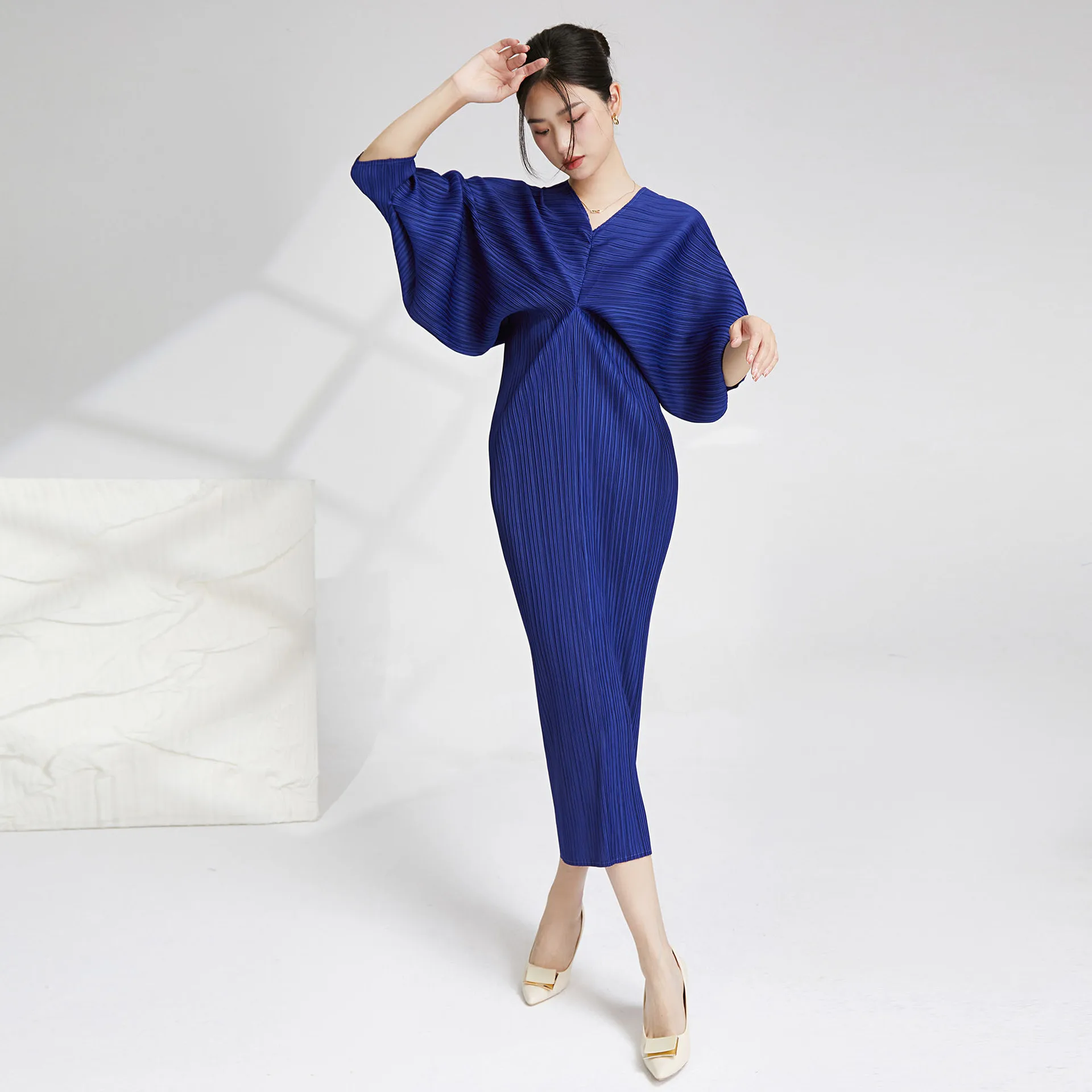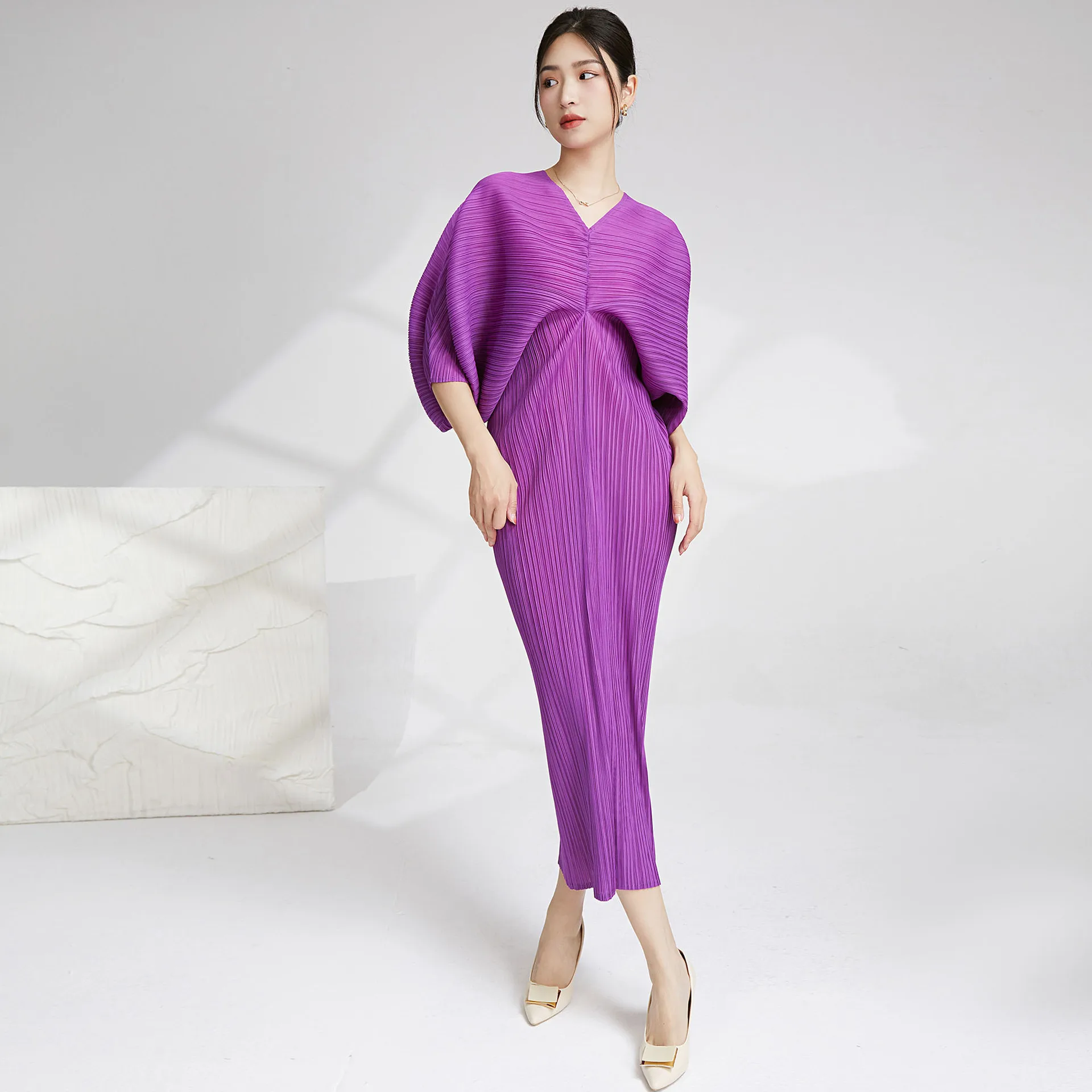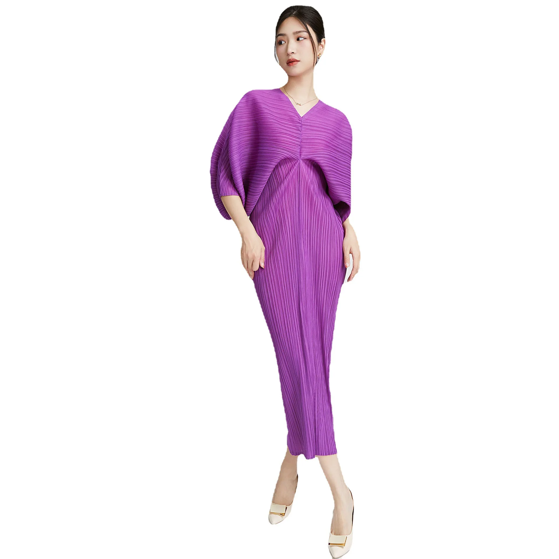 High Quality Wholesale Miyake Women Batwing Sleeve Dress Pleated African Elastic and Loose Casual Style Dress