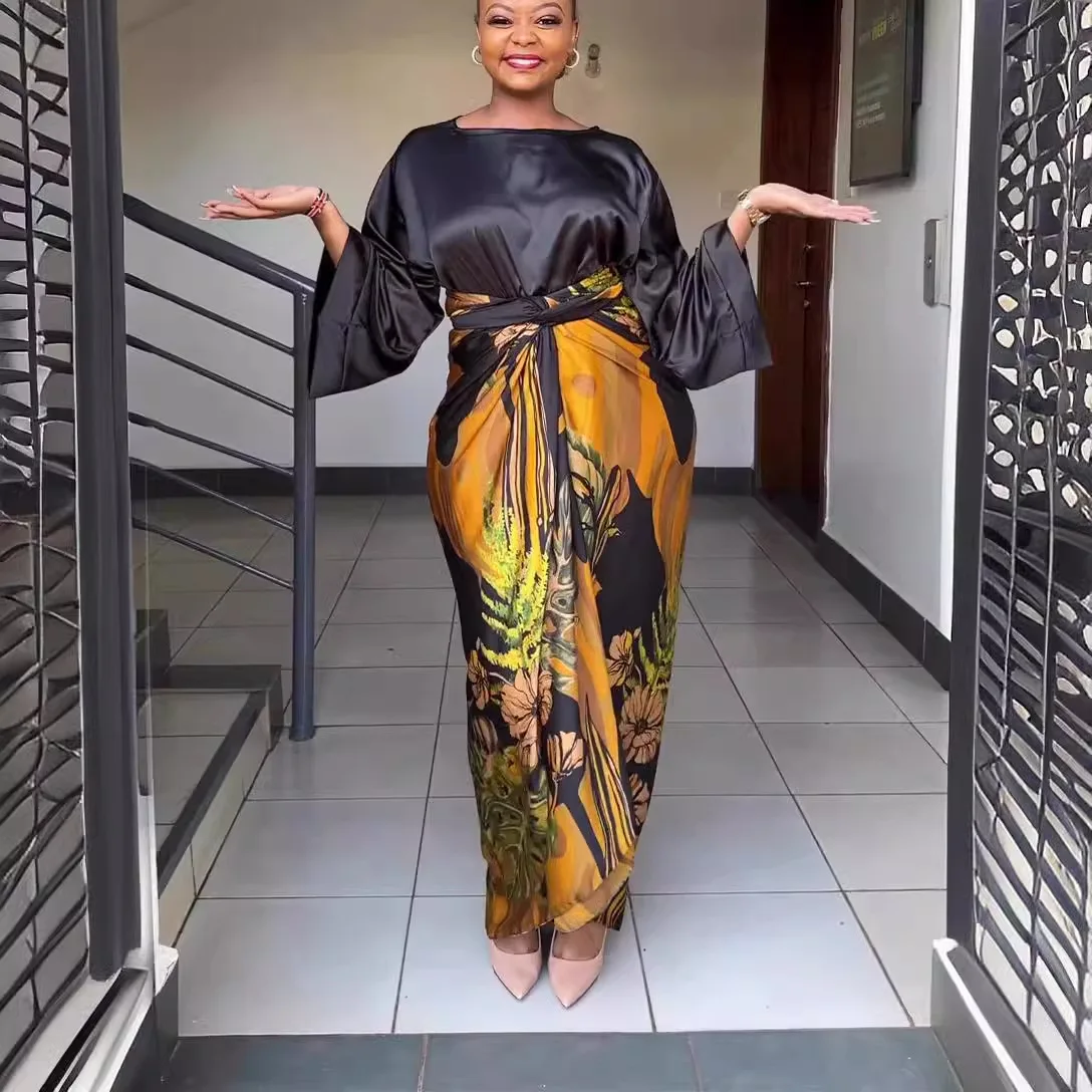 ZYHT 73957 Hot Selling Women Lady Printed Satin Beige Mermaid Fish Tail Floor Length Party Cocktail Evening Dress Gown