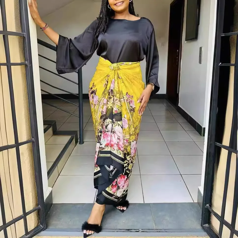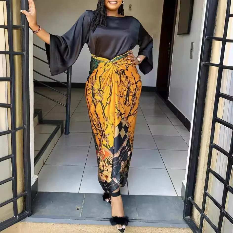 Europe and the United States Summer Fashion Straps Printed Elegant Skirt Loose Top Set