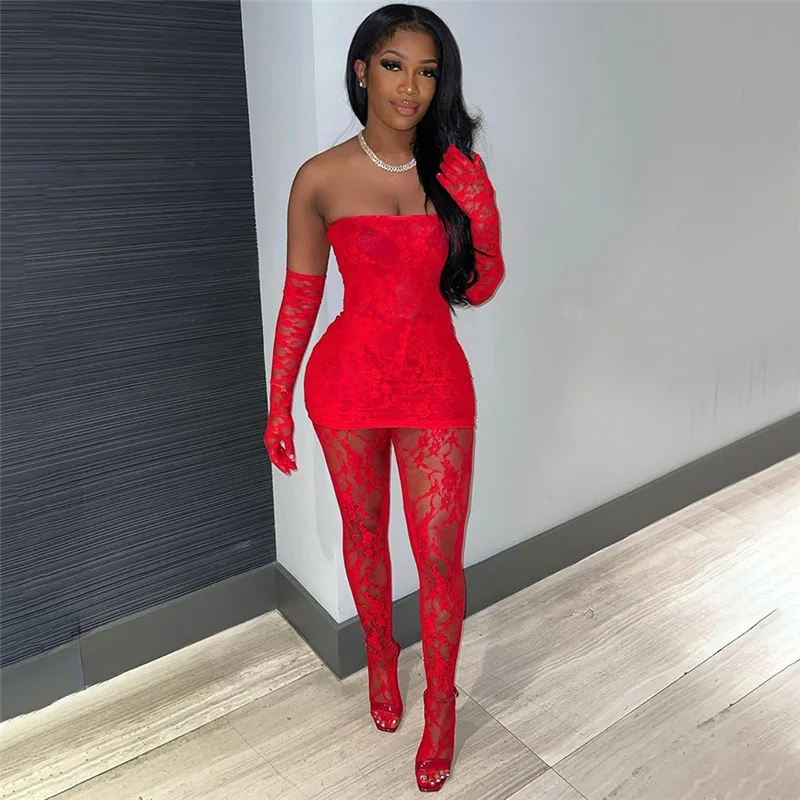 Valentine's Day Red Sexy Dress with Lace Leggings Set XL Nightgowns for Women Fabric Printed Patterns