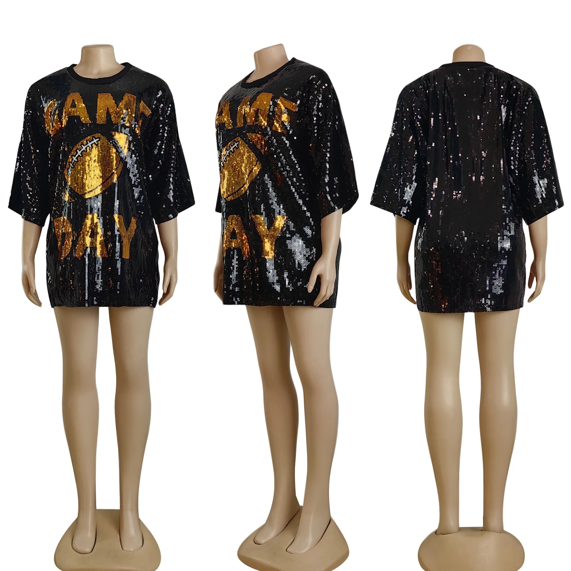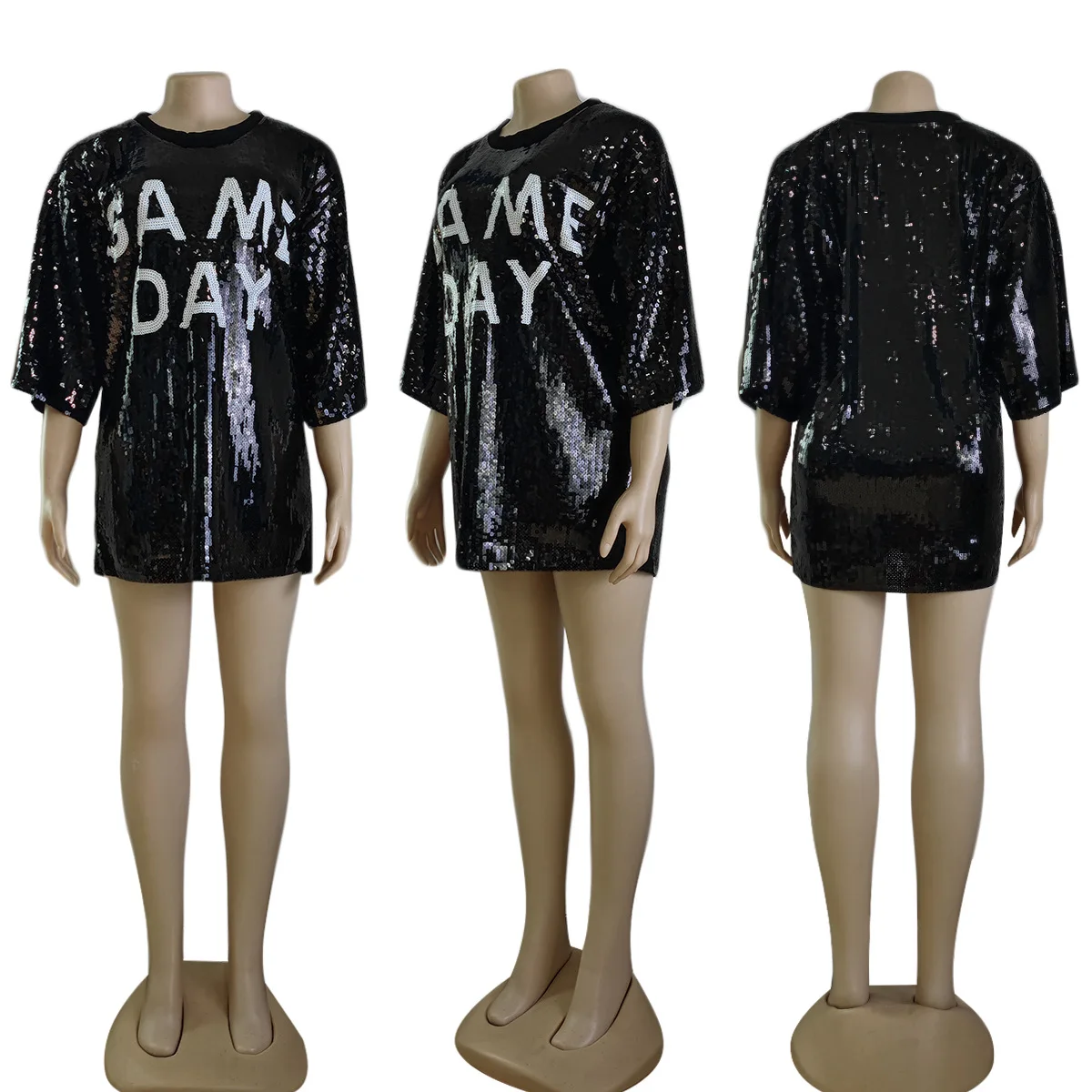 Casual Slim Fit Cowboy Tunic Tops Sexy Half Design Polyester Sequin Jersey with O-Neck Long Length and Button Decoration