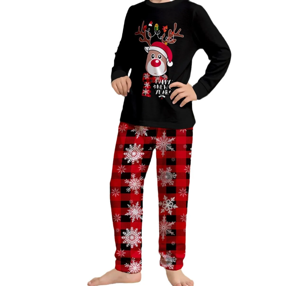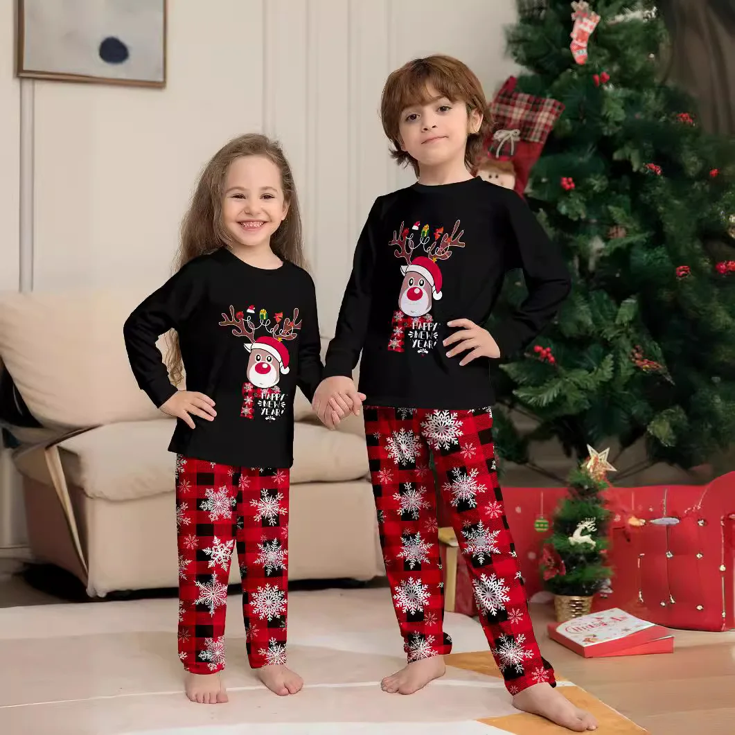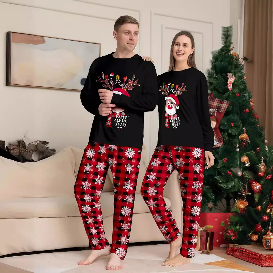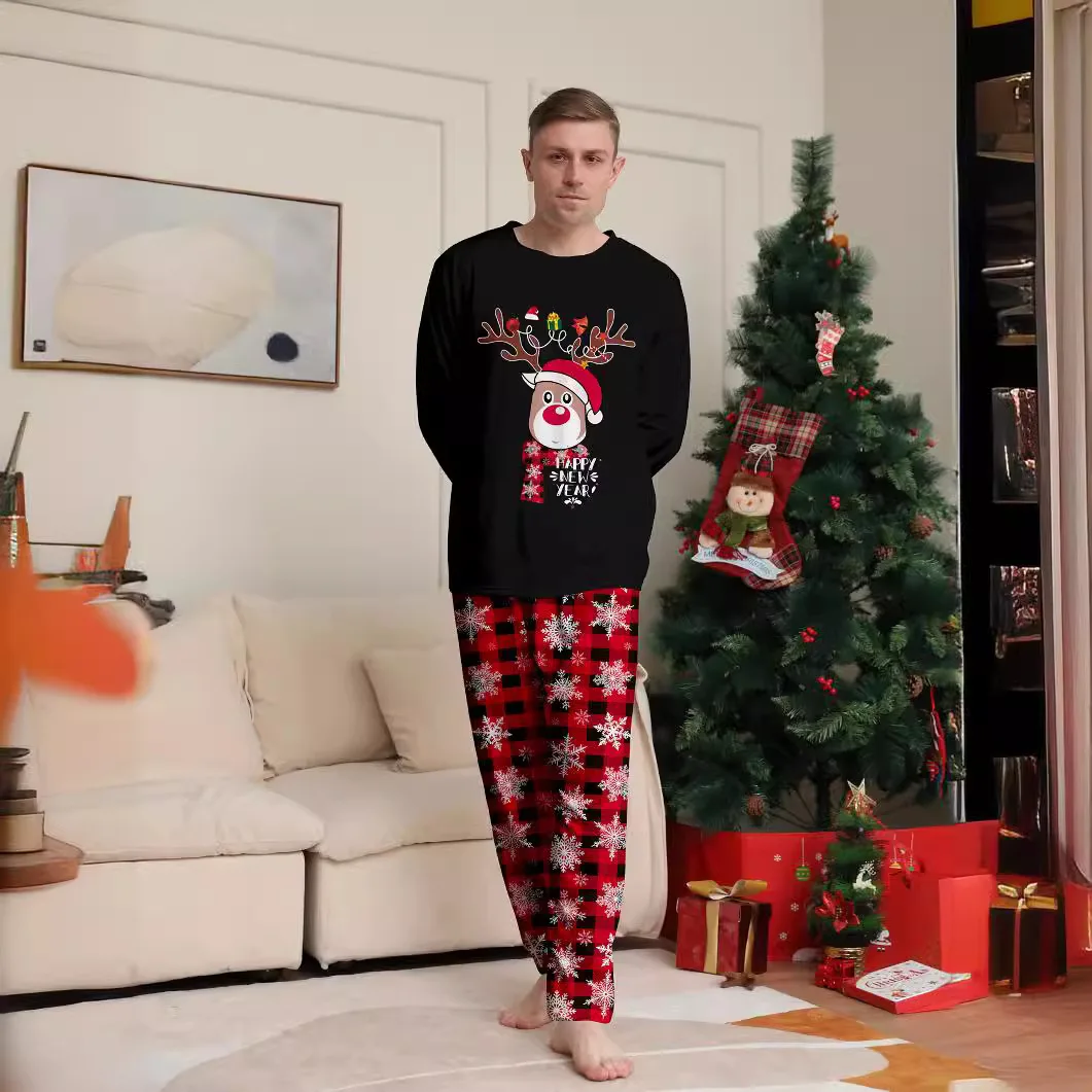 New Fashion Thermal Home Pajamas Set for Women and Children Fawn Alphabet Print for Autumn Holidays Christmas Family Matching