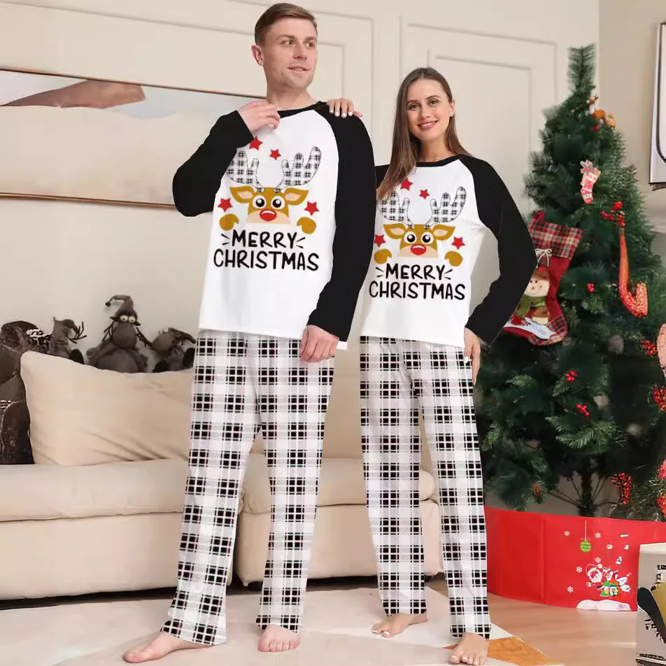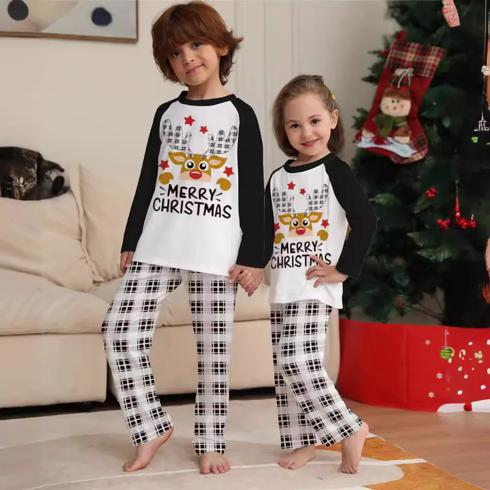 Custom Christmas Print Pyjamas Set 2-Piece Thermal Sleepwear for Adults Kids Babies for Family Matching Christmas Parties Autumn