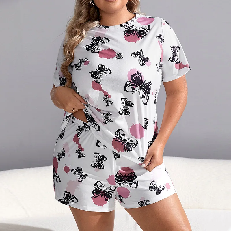 European and American Oversized Pajamas for Plus Size Women Enlarged Home Clothes with Printed Design Women's Sleepwear Sets