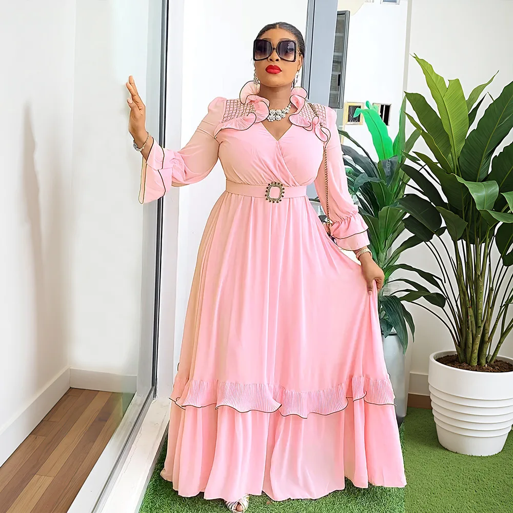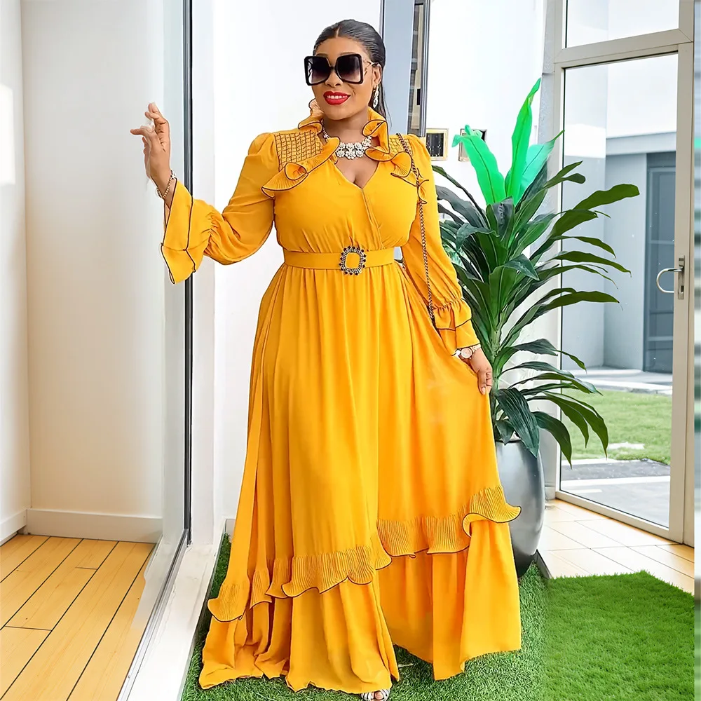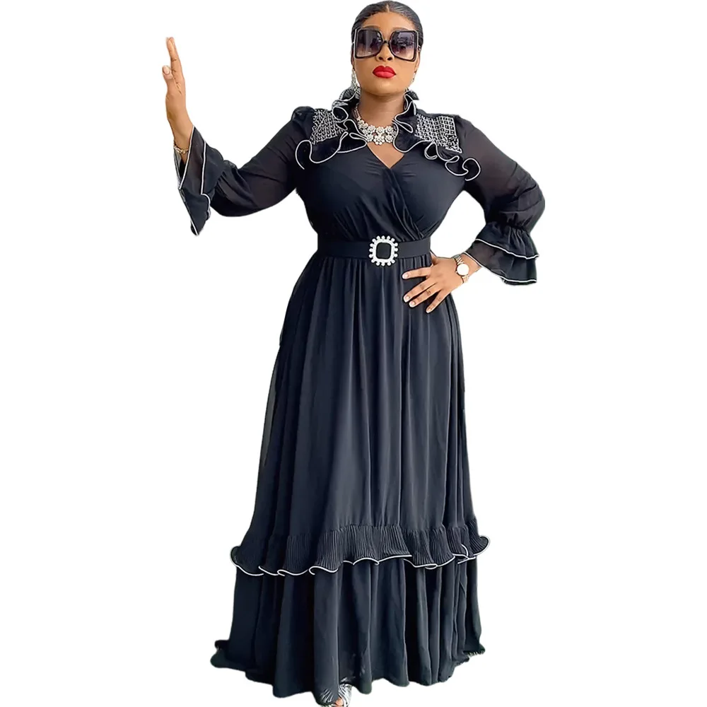 Trendy African Dresses for Women Clothing Long Sleeve Ruffle Chiffon Party Dresses Women Plus Size Church Dress