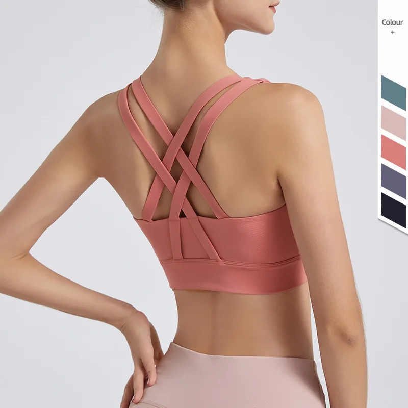 Women's Sexy Cross Beauty Back Fitness Sports Bra Shockproof Push-Up Outer Wear Yoga Sports Underwear