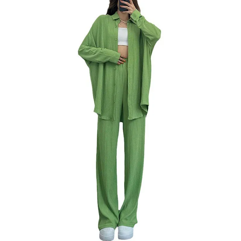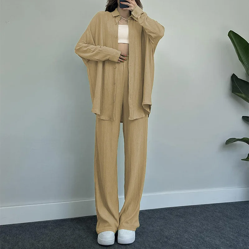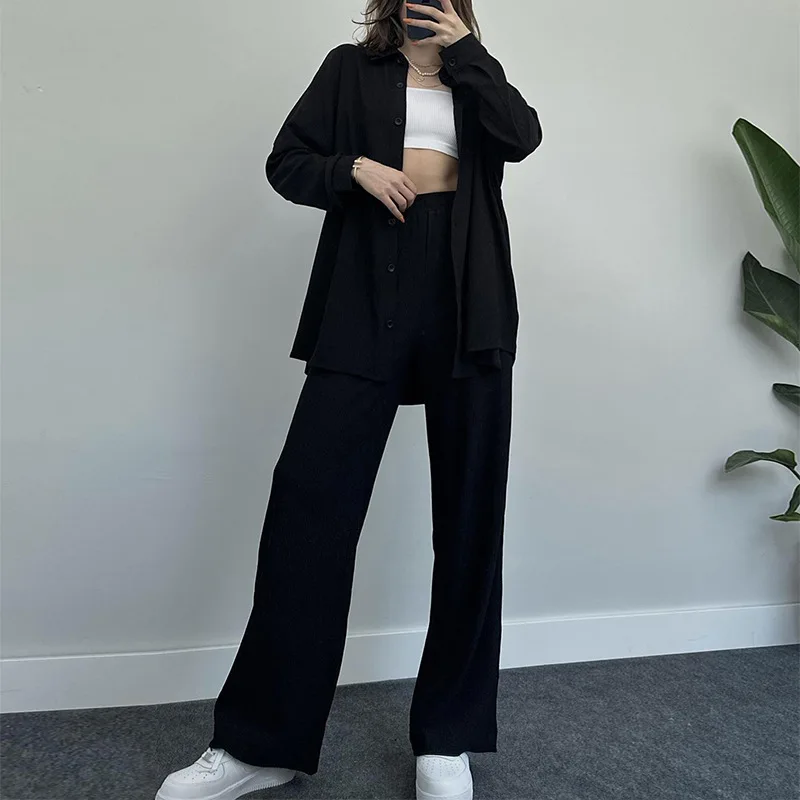 Women's New Fashion Solid Color Cotton Two-Piece Set Long Coat and Shirt Casual One-Set Knitting Fabric