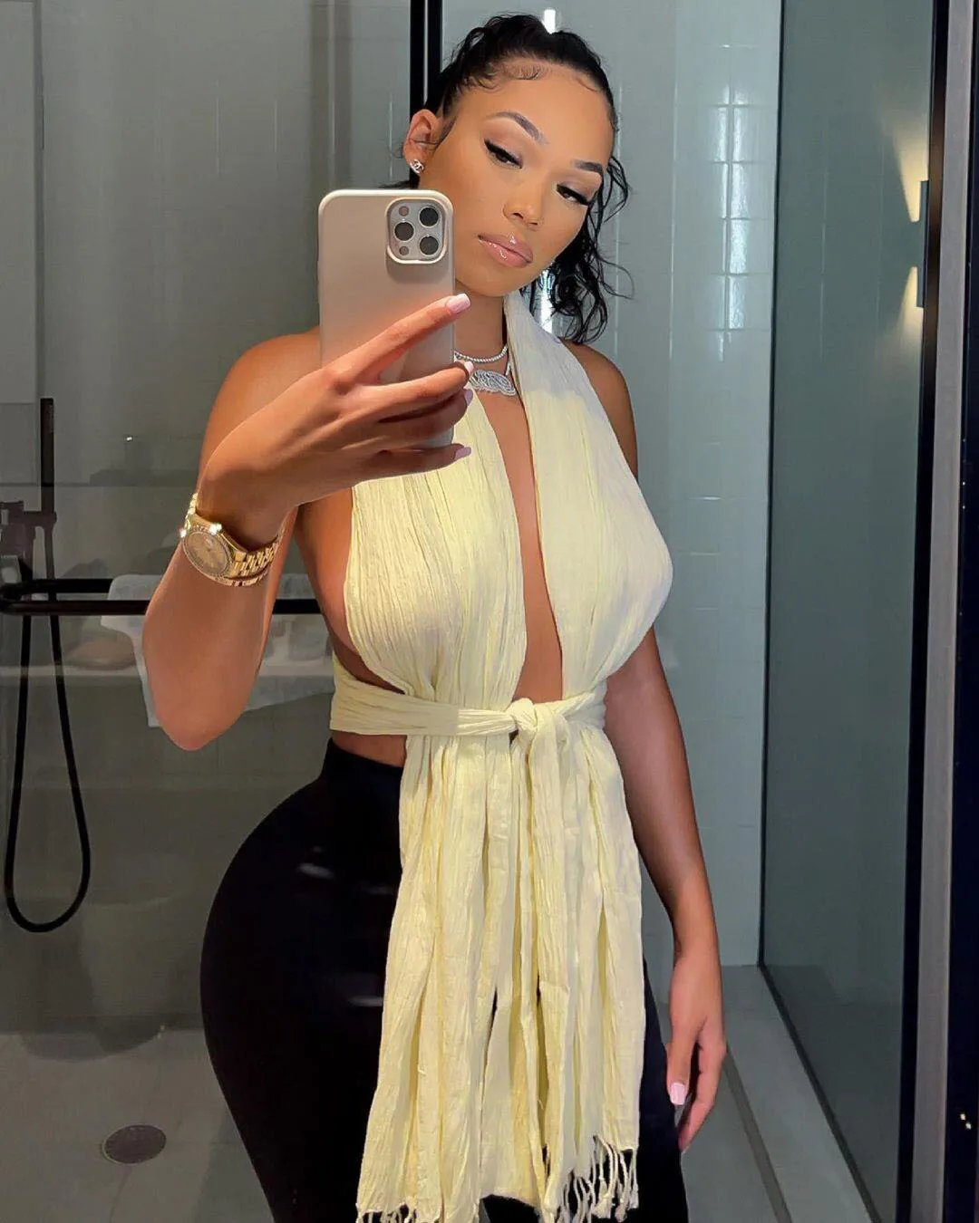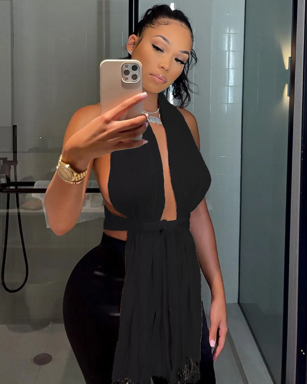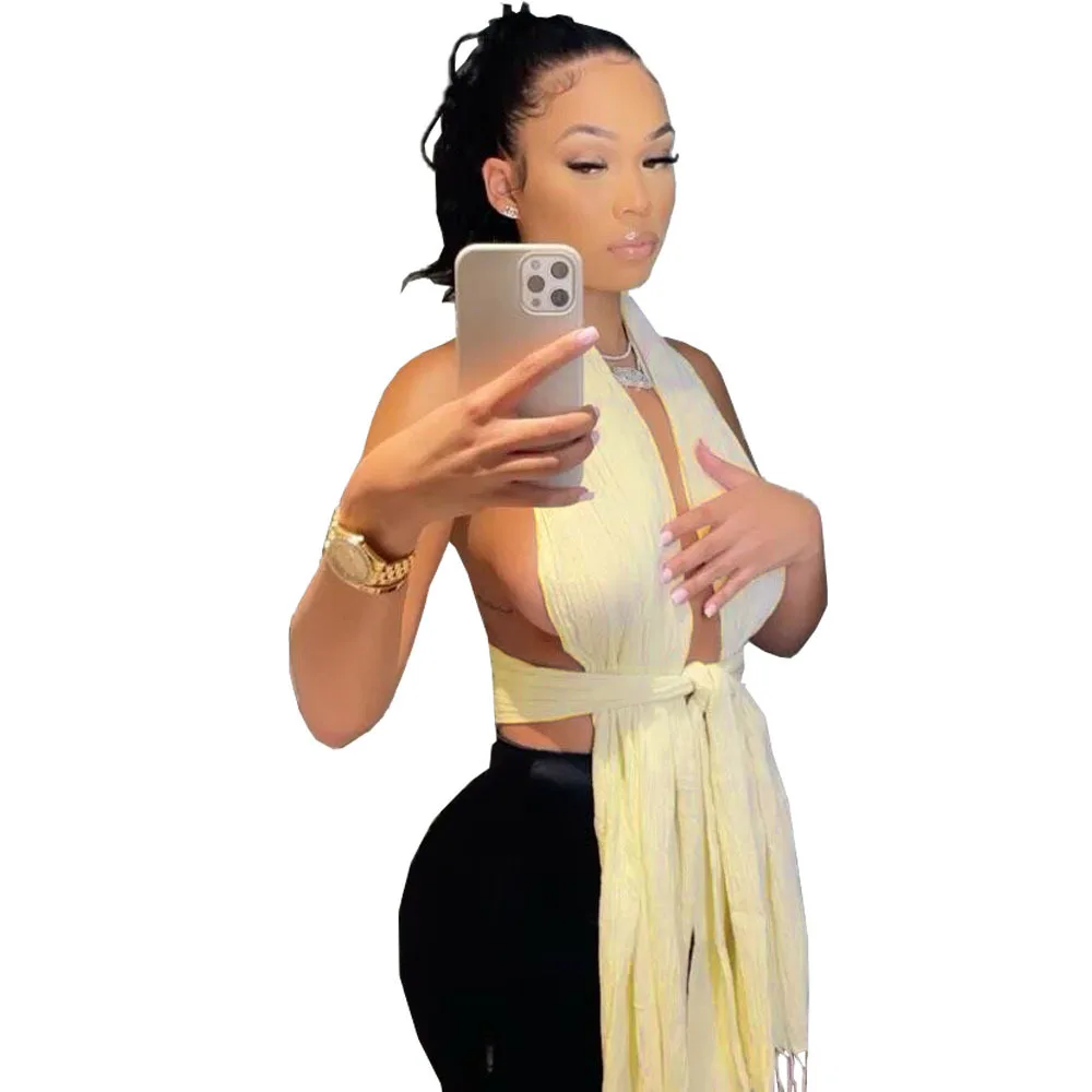 Ladies Fashion Summer Halter Crop Top Sexy Party Club Wear Button O-Neck Stripper Clothes for Women Streetwear hot girl look