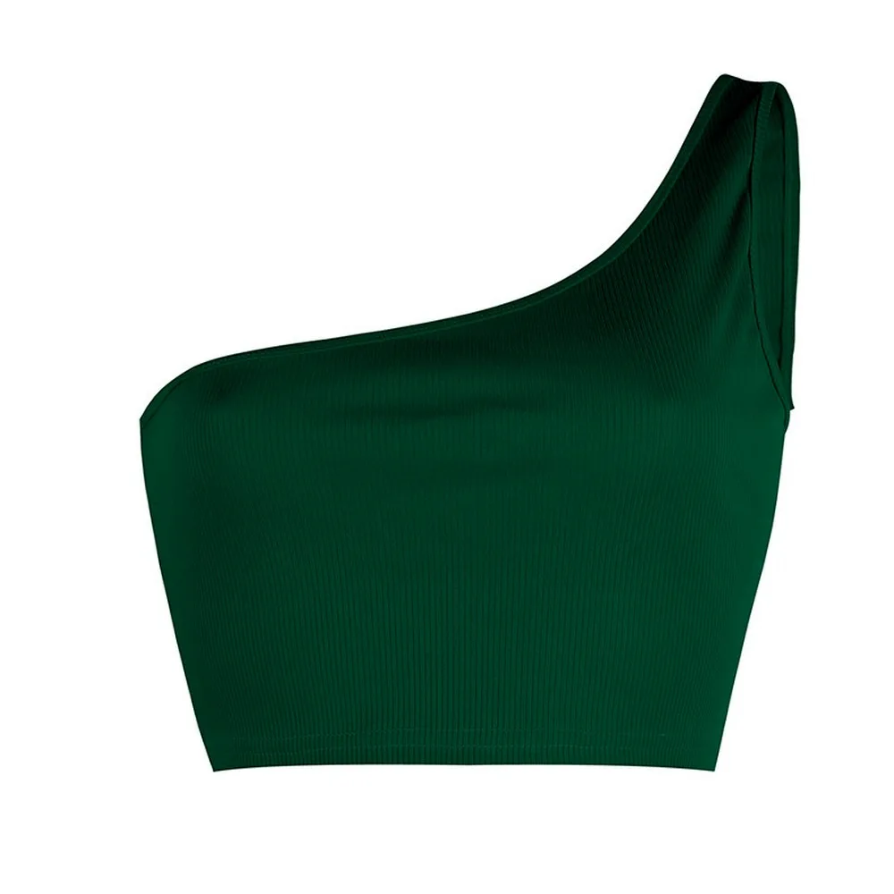 One Shoulder Halter Ribbed Solid Color Bodycon Spaghetti Stylish Bare Midriff Straps tank Cropped Tops Too Women