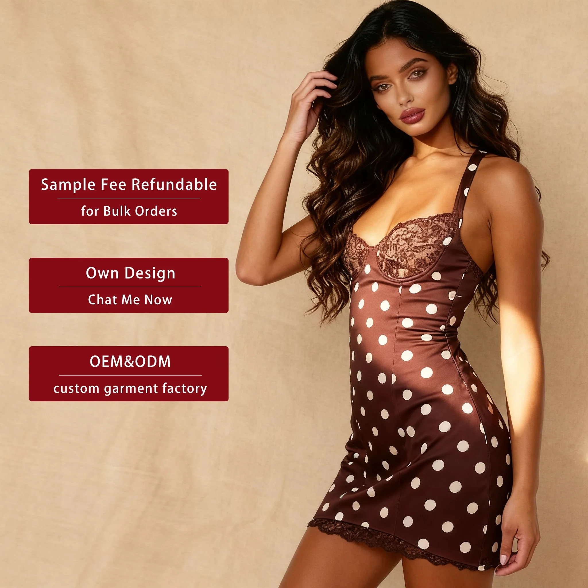 Suspender Skirt V-neck Ruffled A-swing Dot Lace Hot Girl Dress