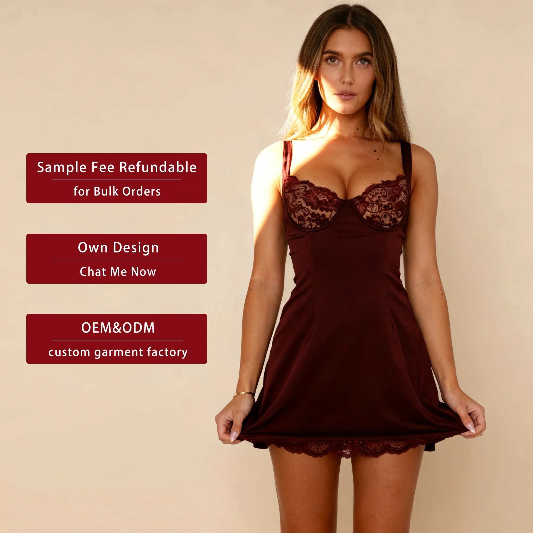 Sexy Lace Stitched Satin Suspender Dress