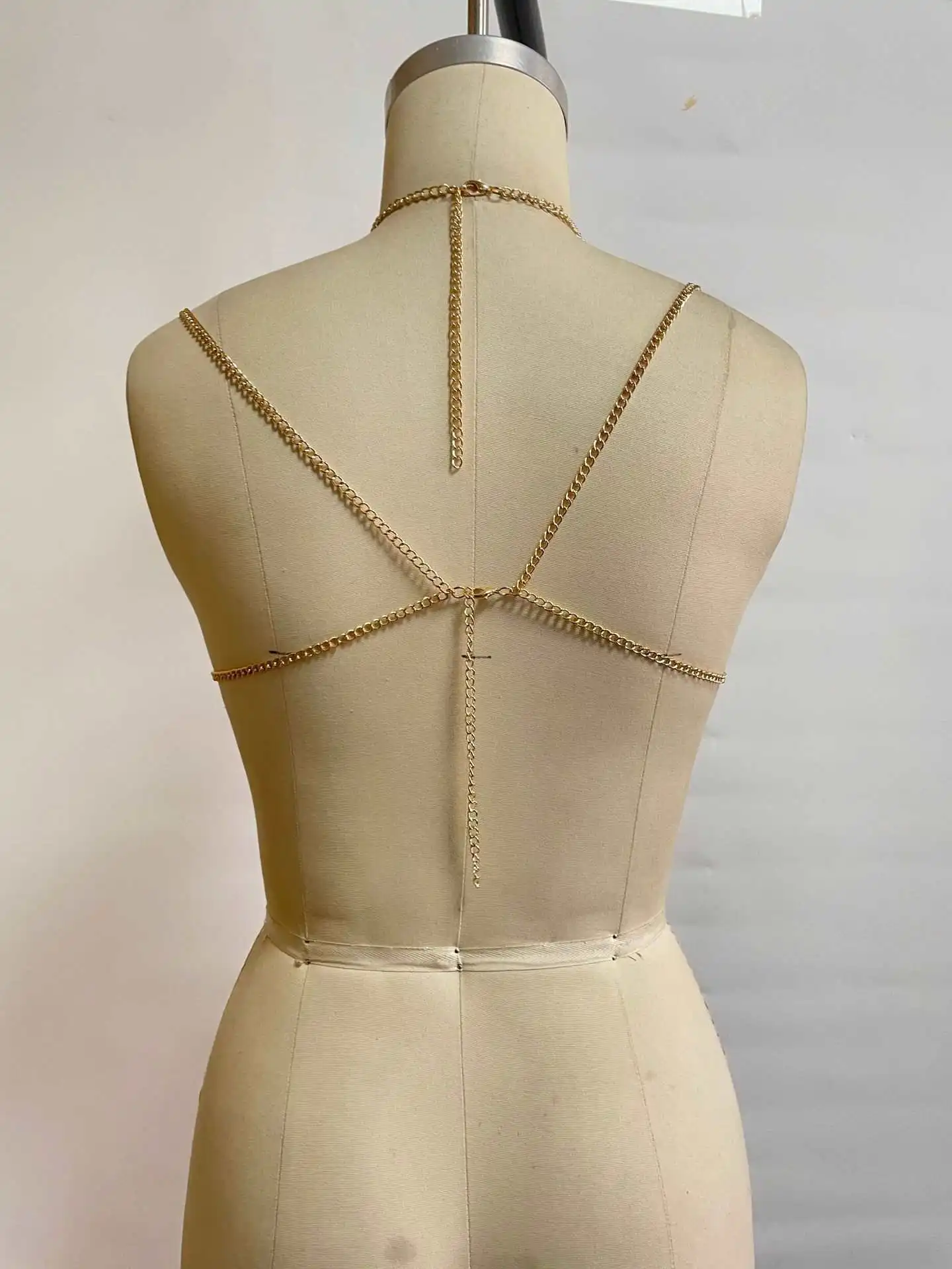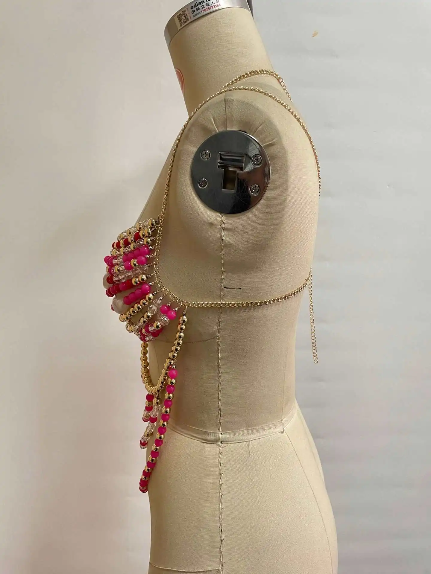 Dropshipping New Arrivals 2026 Party Club Wear Beachwear Bra Beaded Top Bralette Body Chains