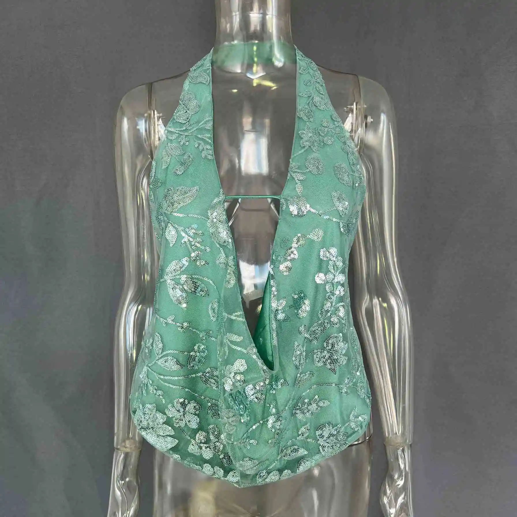 Dropshipping Wholesale High Quality Sequined 2026 Trendy Fashion Backless Ladies Woman Top Vest