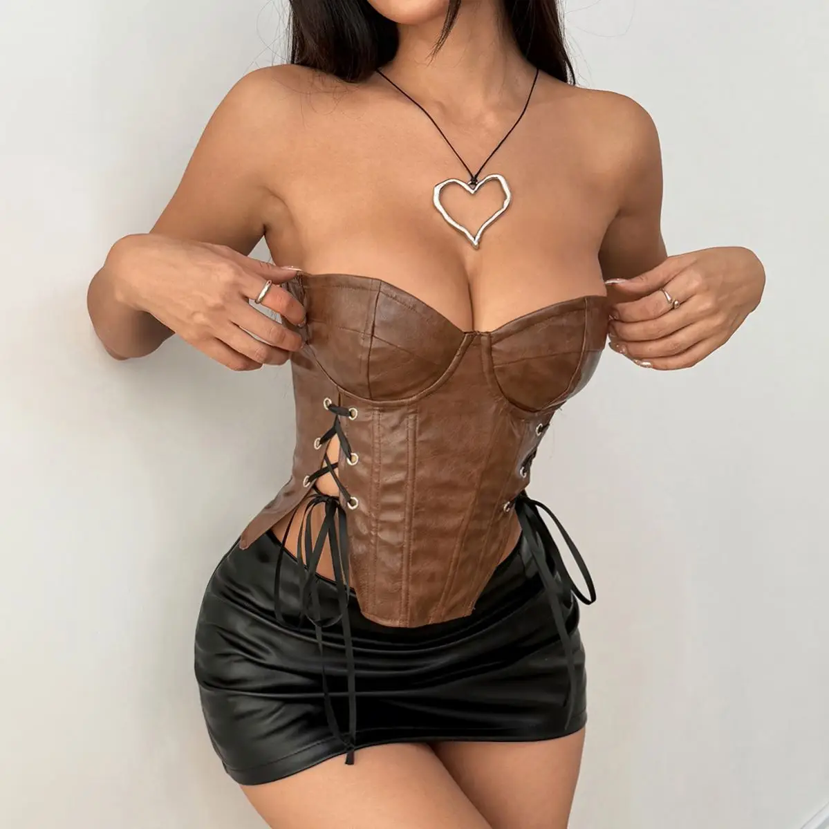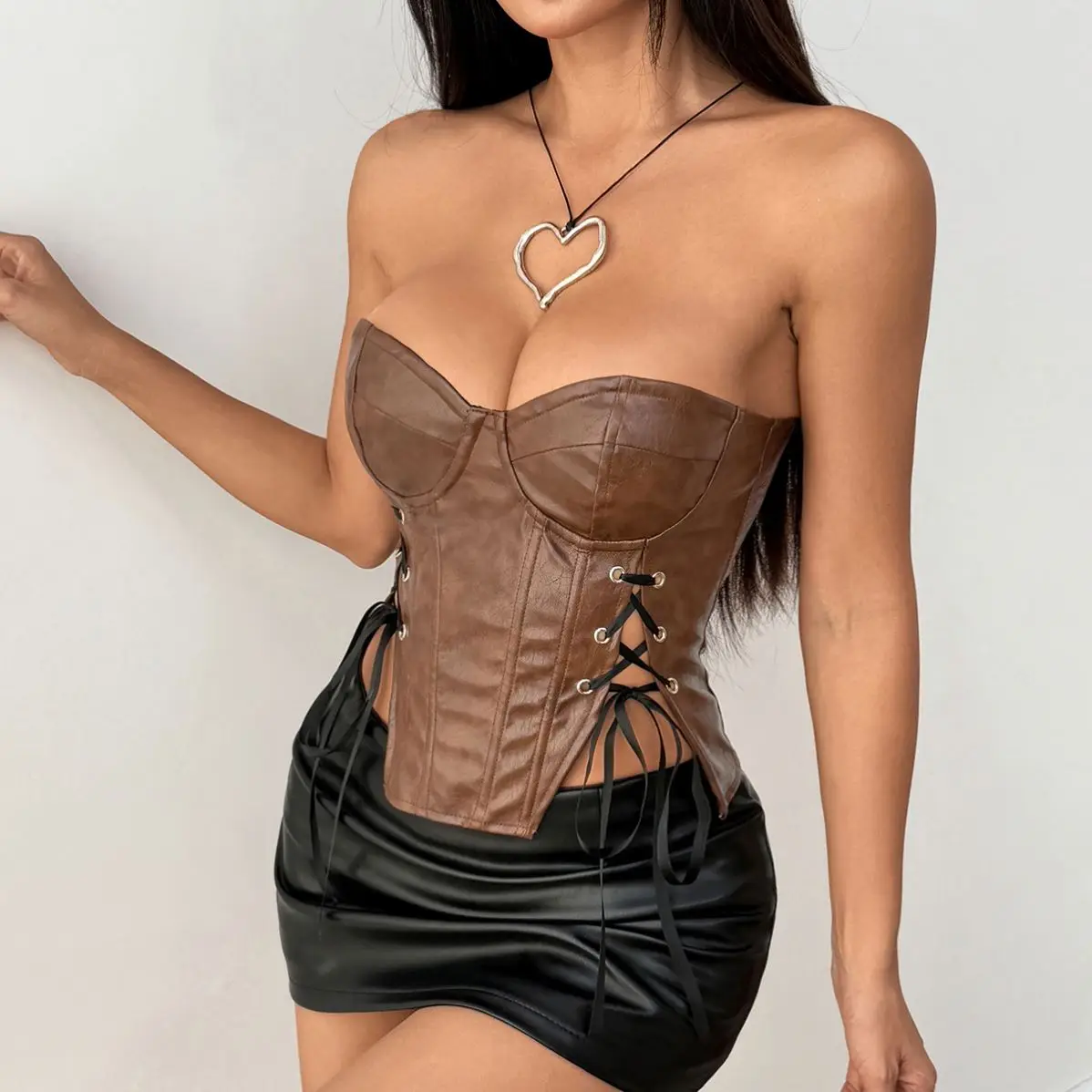 Dropshipping 2026 Wholesale Hot Sexy Fashion Leather Lace up Sexy Girls Popular Women Tank Tops