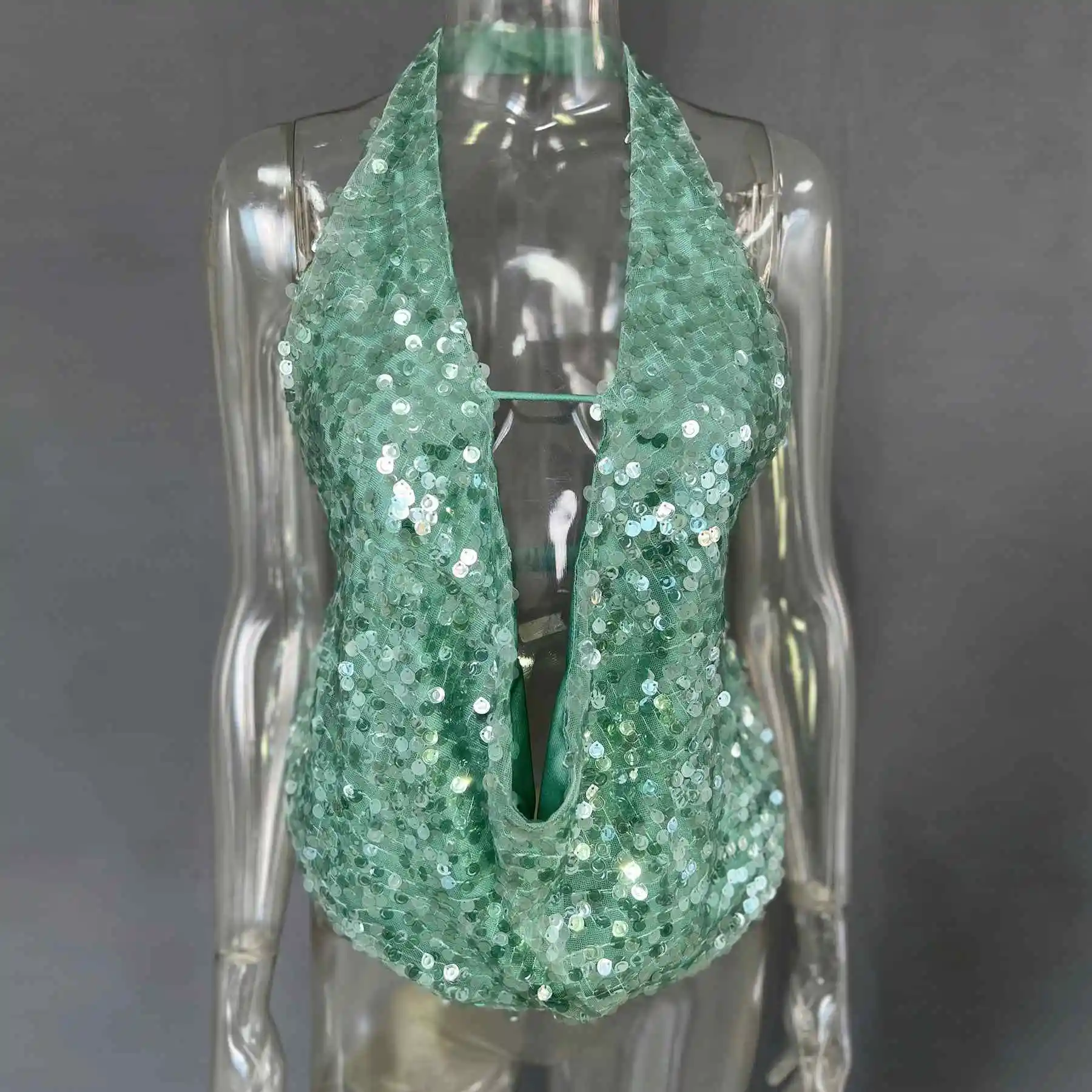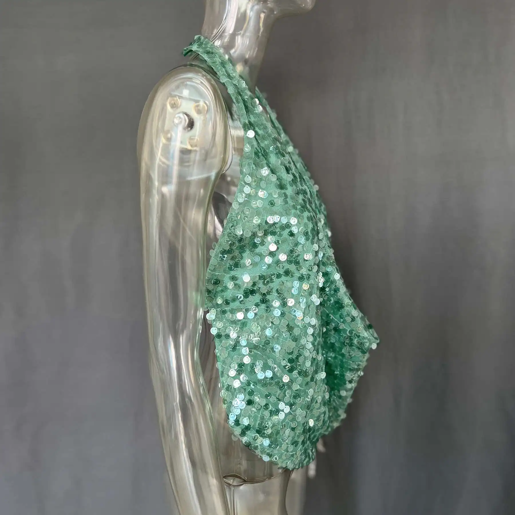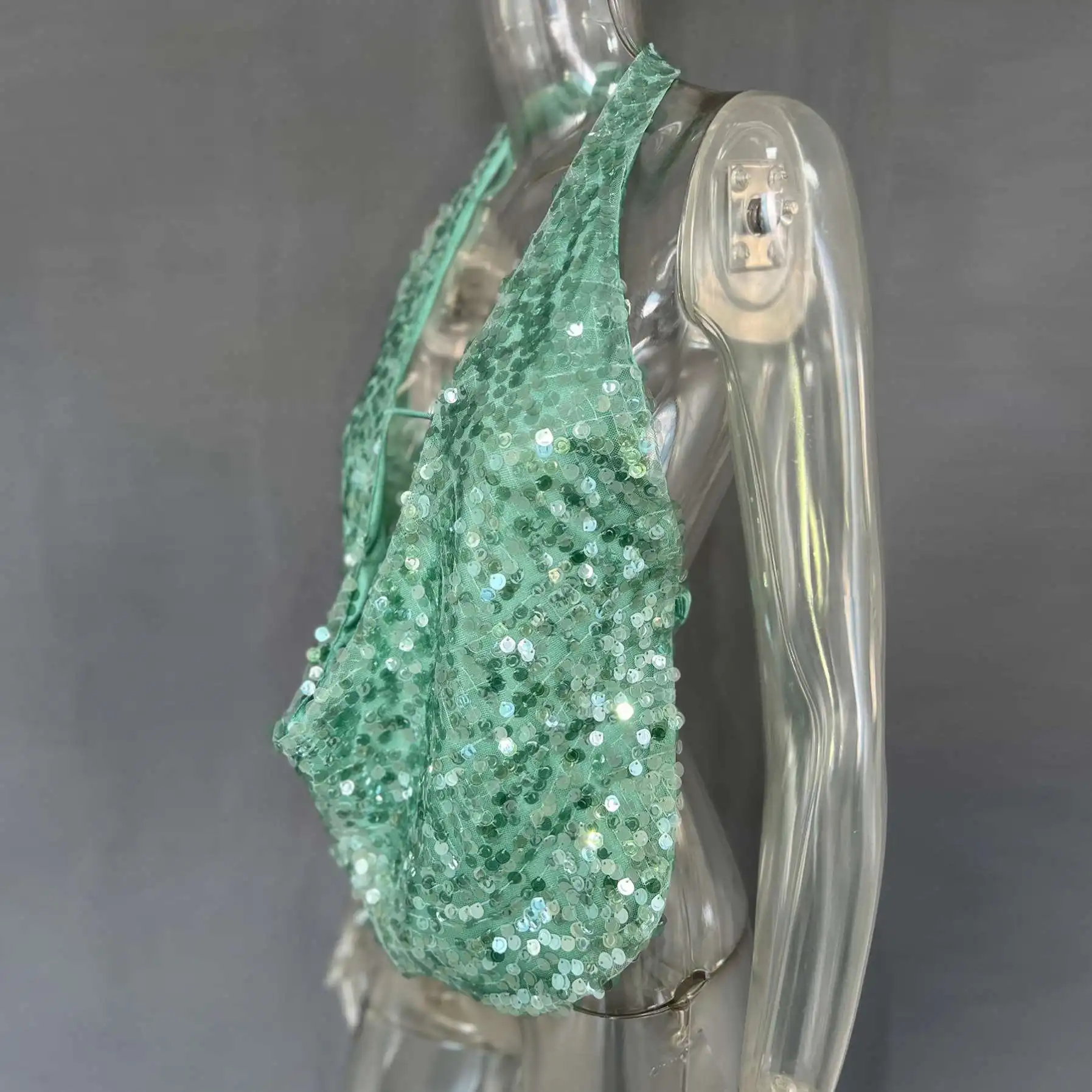 Dropshipping Ready to Ship Sequined 2026 Trendy Fashion Backless Ladies Woman Top Vest