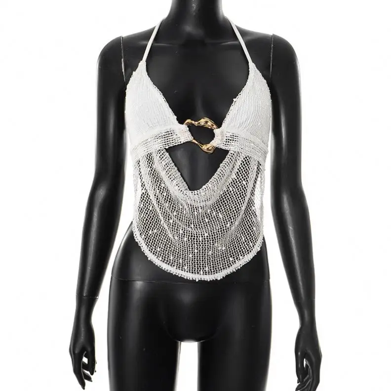 Dropshipping 2026 Summer Hot Sexy Fashion Crop Top Mesh Hollow Out Hot Sexy Women tank Tops