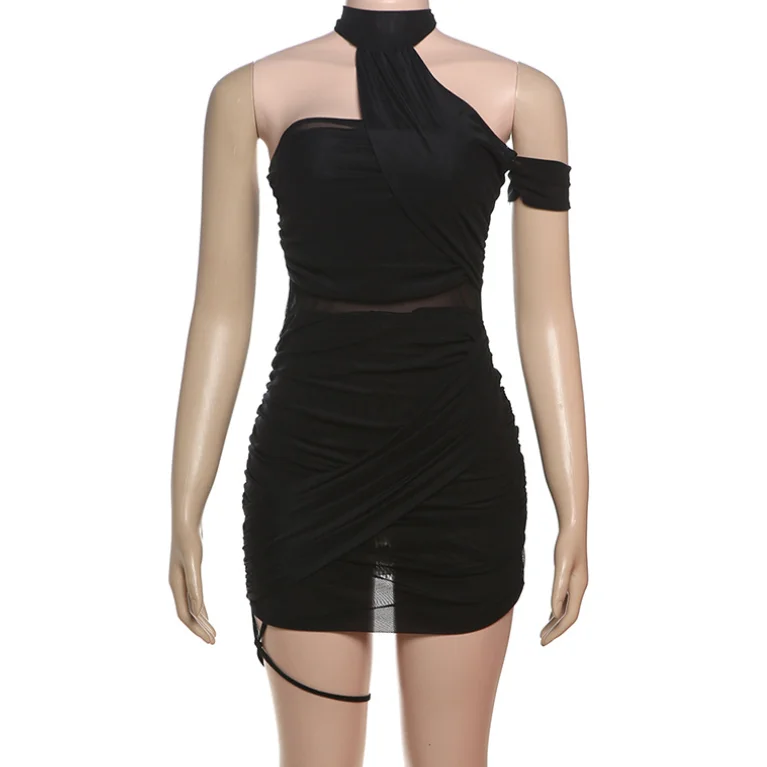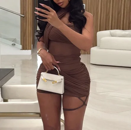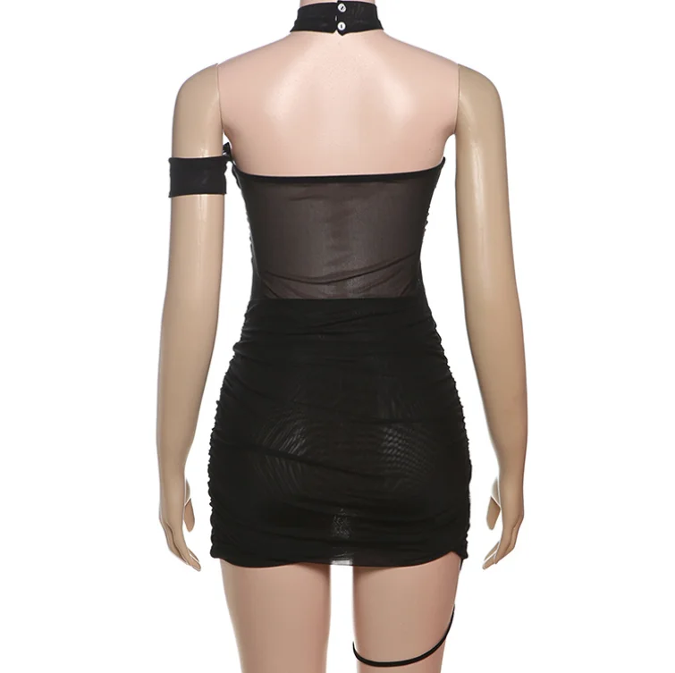 Dropshipping Summer Sexy Women Halter Backless Hip Mesh Dress