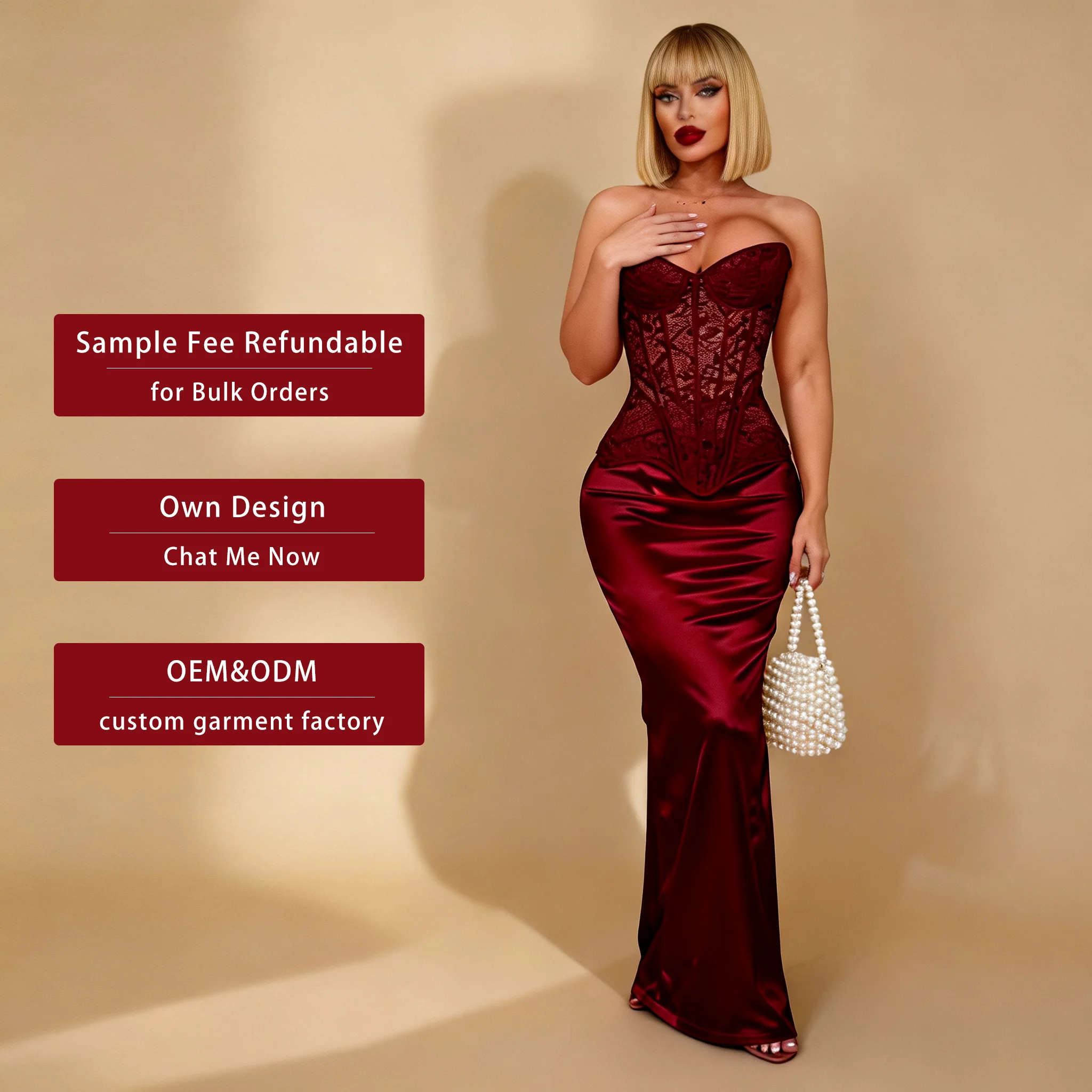 ZYHT 21541 Wholesale Crew Neck High Waist Casual Dresses Elegant Lace Velvet Mermaid Hem Ruched Long Sleeve Dresses for Women