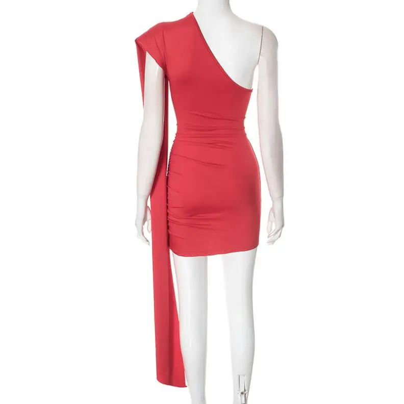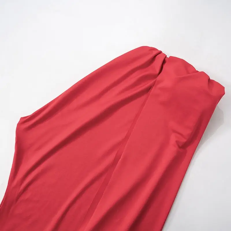 ZYHT 73849 European Wholesale Fashion Casual One Shoulder Ruched Maxi Dress Side Slit Pleated Long Sleeve Dresses for Women