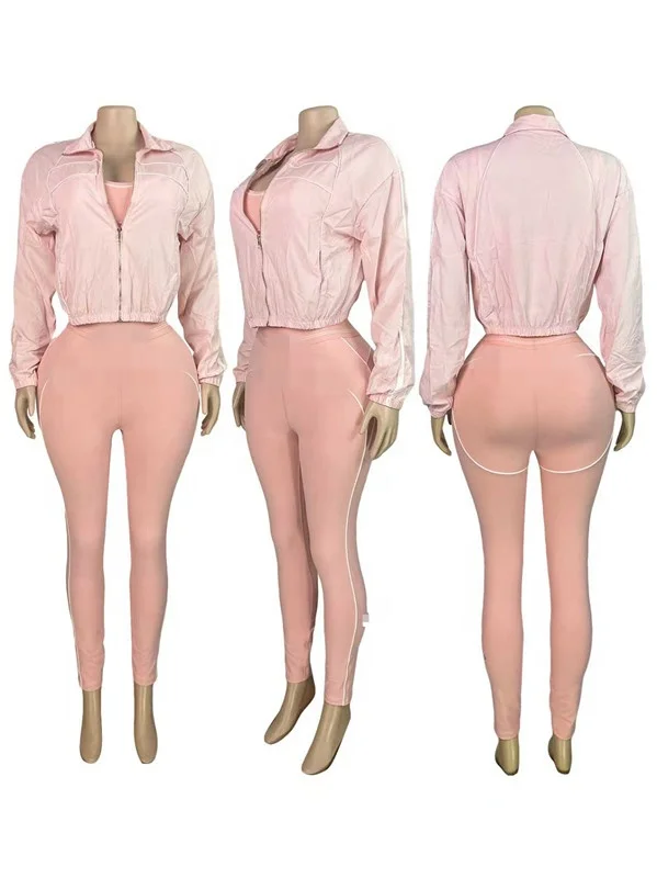 Dropshipping New Arrivals Trendy Popular 2026 Women Coats Jogging Wear 3 Piece Long Pants Set