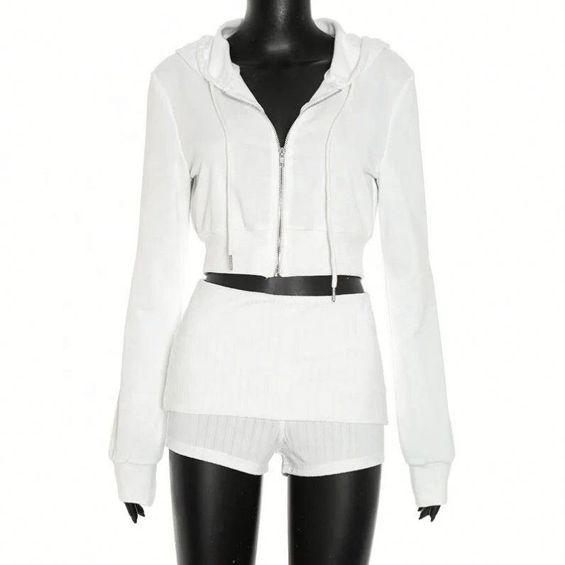 Dropshipping New Arrivals 2026 Fall Winter Boutique Trendy Hoodie Tracksuit 2 Piece Shorts Set