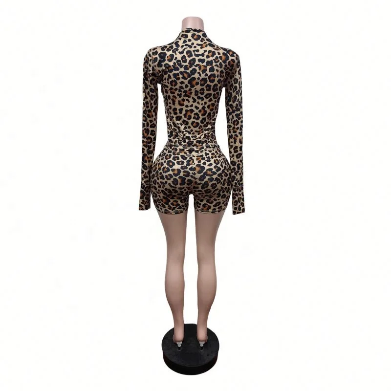 Dropshipping New Arrivals 2026 Fall Women Clothing Leopard Print Long Sleeve Casual Shorts Set