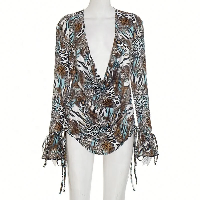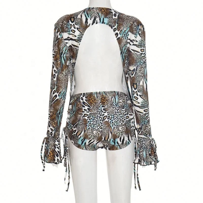 Dropshipping New Arrivals 2026 Fall Autumn Digital Printed 2 Piece Long Sleeve Top Shorts Set