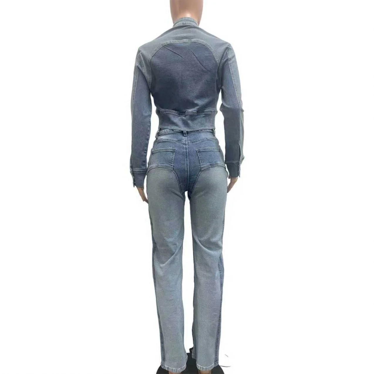 Dropshipping New Arrivals 2026 Women Clothing S-2XL Long Sleeve Denim Jeans Two Piece Pants Set