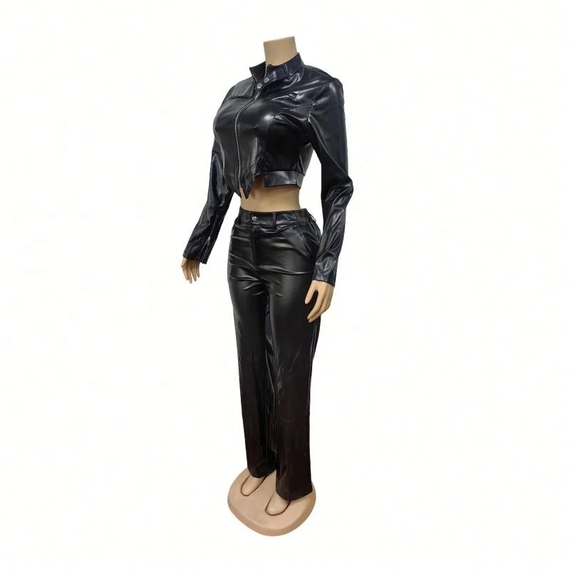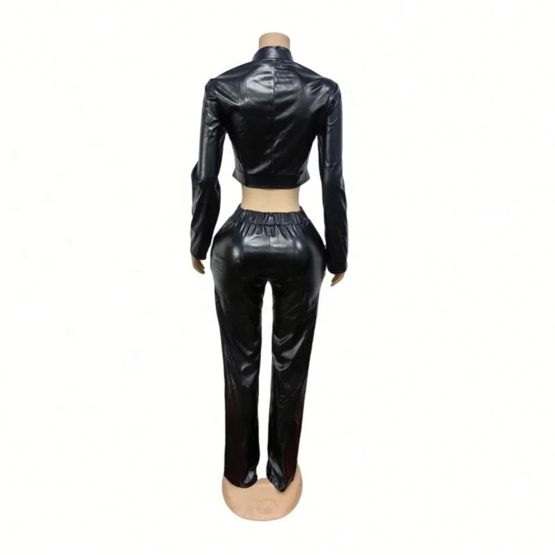 Dropshipping 2026 Wholesale Clothing Woman S-2XL Pu Leather Club Wear Two Piece Women's Sets