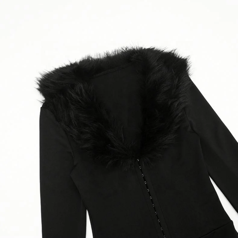 ZYHT 35239 Women's Elegant Black Velvet Blazer with White Ruffled Trim Peplum Hem & Long Puff Sleeves Chic Formal Jacket